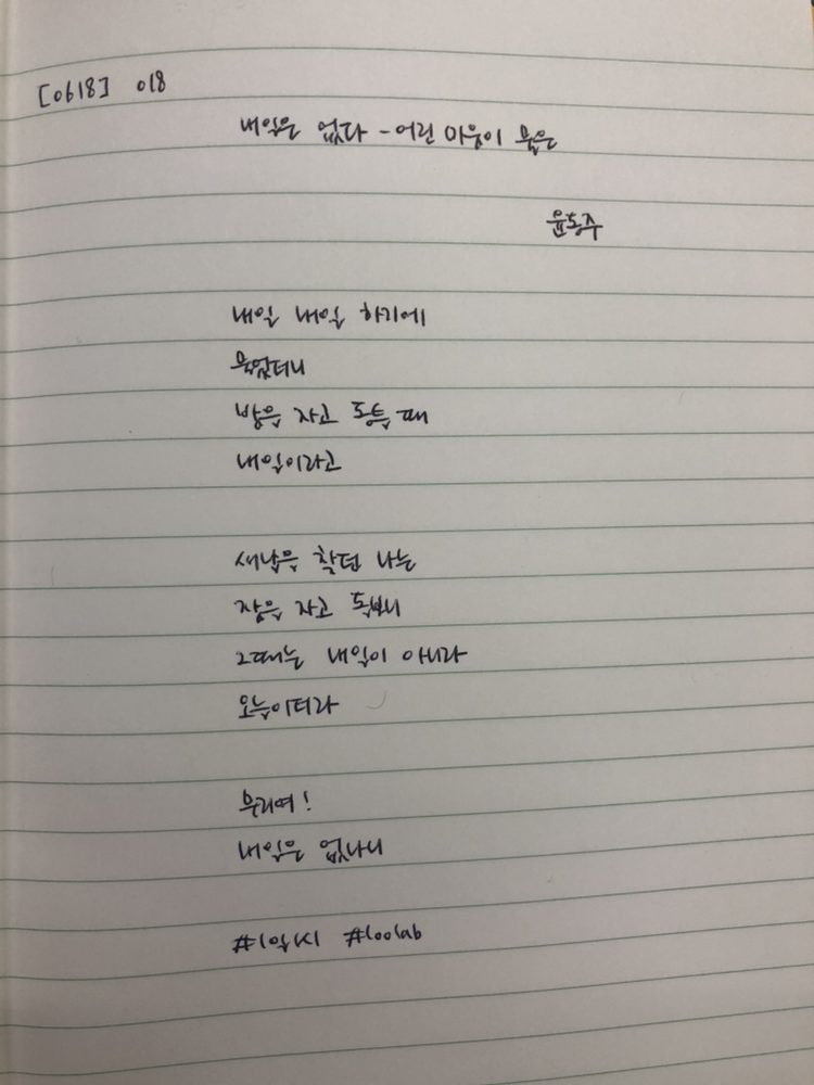 18일차. 내일은 없다 (어린 마음이 물은) - 윤동주