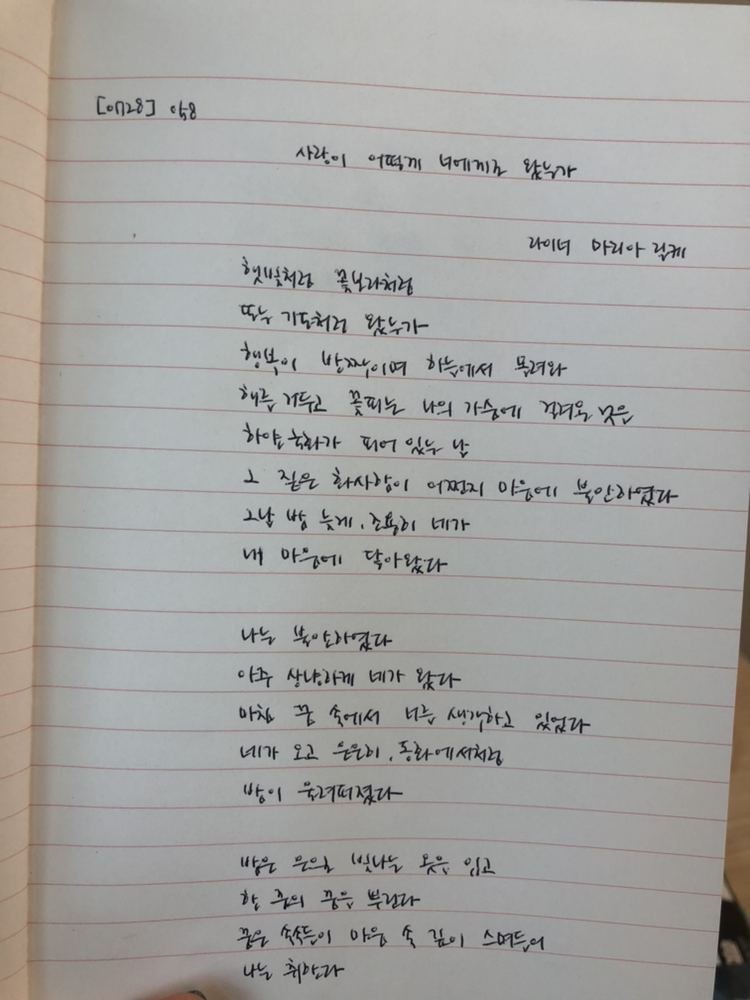 58일차. 사랑이 어떻게 너에게로 왔는가