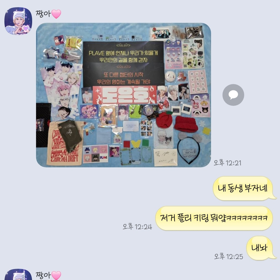 손재주가 없는 우리 자매는 간식 꾸러미를 만들어 가서, 답례품으로 드렸다! 주변 좌석 플리들에게도 드렸는데, 동생 옆자리 분이 받으시고는 자기는 줄 게 없다며 어쩔 줄 몰라하셨다고 한다. 동생이 괜찮다고 하자, 최애가 누구냐고 물어보고는 자신의 므모의 모자를 휙! 벗겨서 동생에게 주셨다고 한다ㅋ_ㅋ. 자신이 만든 거라며ㅎ_ㅎ. 냅다 모자 뺏긴 옆플리 므모ㅜㅜㅋㅋㅋㅋㅋ 플리들 너무 귀엽다.