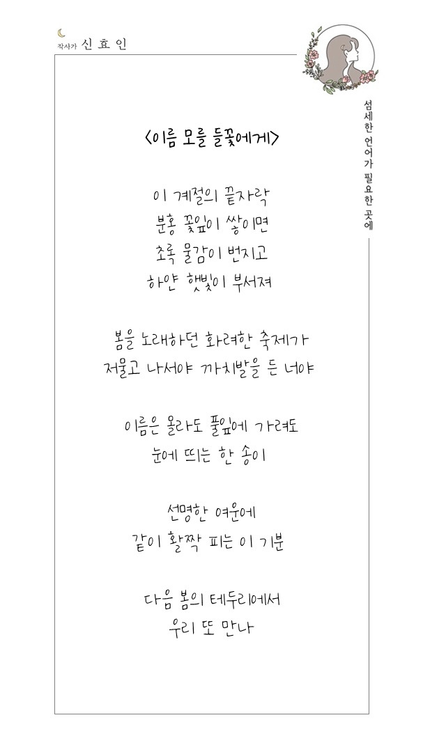한 송이 들꽃을 보고 쓰게 된 가사 <이름 모를 들꽃에게>