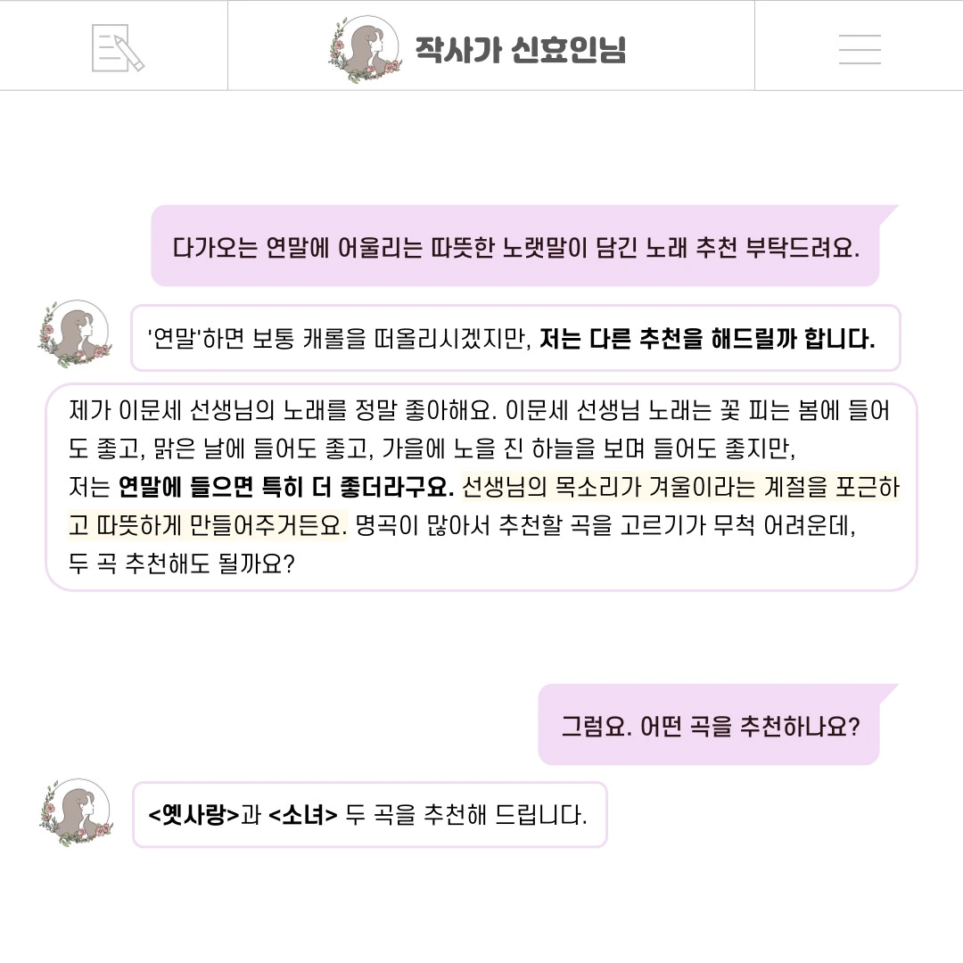 - 작사가 신효인 올림