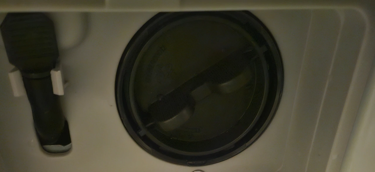 처음 겪는 경우는 아니었다. 2년 전 샤워 가운을 세탁했을 때도 이래서 그 추운 겨울에 물을 잔뜩 머금은 샤워 가운을 세탁방까지 낑낑 들고 가서 헹굼-탈수를 했더랬지. 그때 가운 꺼내겠다고 수동으로 배수했던 방법이 생각이 나서, 이번에도 그렇게 했다. 세탁기 맨 아래 서랍을 열면, 아래 사진과 같이 배수구가 하나 더 있다.
