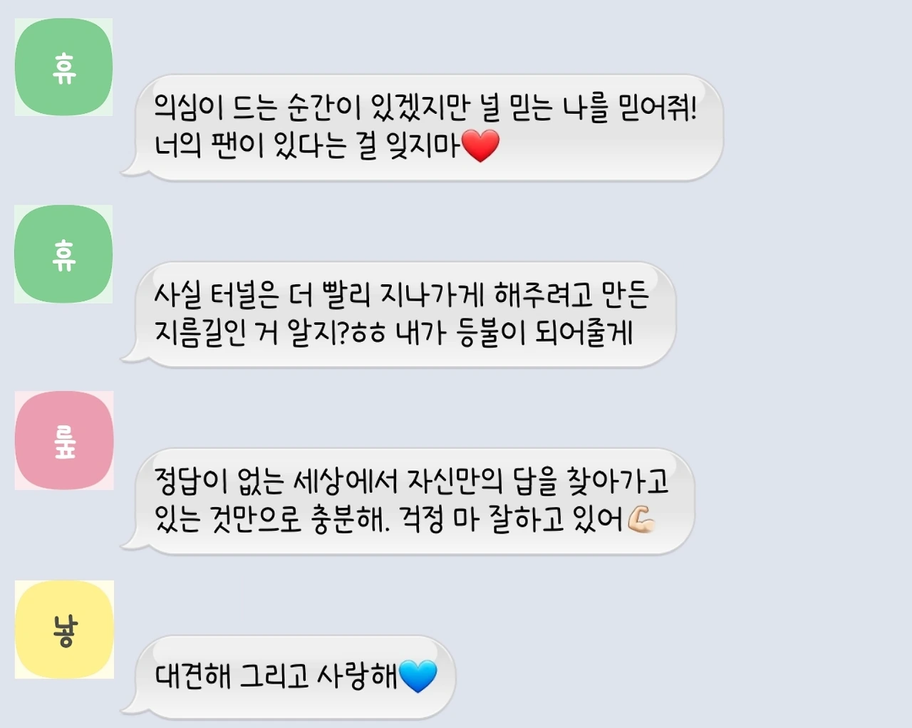 중요한 건 꺾여도 그냥 하는 마음. 얼마든지 꺾여도 괜찮다고, 마음 하나 있으면 그 마음이 믿음이 되어서 실체가 없는 것이 실체가 될 수 있도록 엔진이 되어줄 거라고, 혹시 누군가가 자신의 길을 망설이고 있고 믿지 못하고 있다면 믿어도 된다고 너무 응원해주고 싶고요.