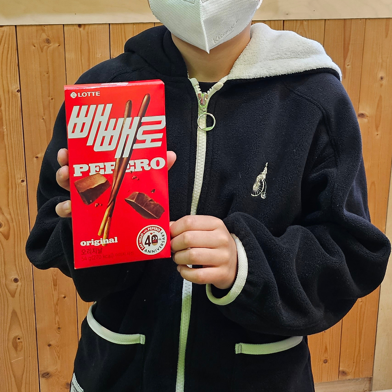 11월의 한 금요일. ◎◎이가 학원문을 열고 들어오자마자 '선생님 거예여' 하며 내게 빼빼로를 내밀었다. 달력을 보니 주말에 빼빼로 데이가 있었다.(몰랐음) 놓치지 않고 챙겨주겠다고 금요일에 빼빼로를 들고 온 ◎◎이가(+어머니의 마음 써주심이) 너무 소중하고 예뻤다. 아이가 서둘러 수업에 들어가야 해서 리액션을 제대로 해줄 틈을 못 가졌다. 아니나 다를까, ◎◎이는 쉬는 시간에 헤헤 웃으며 카운터를 다시 찾아왔다. 잘 먹겠다고 고맙다고 말하고 있는데, 빼빼로를 들고 있는 아이가 예뻐서 그 순간을 기록하고 싶었다.