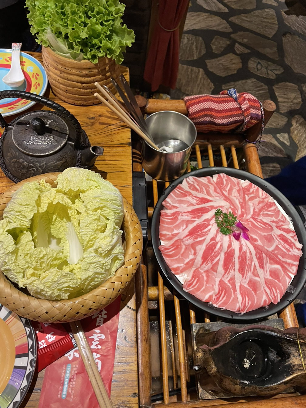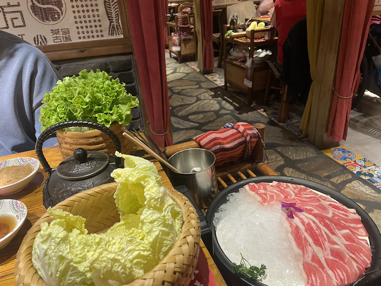 그리고 시켰던 훠궈탕과 고기와 야채들이 나오는데 양이 걷잡을 수 없이 많았다. 너무 많이 시켰나 싶었지만 어차피 야채여서 다 먹을 거라고 엄마가 말했다. 특히 저 양배추가 너무 맛있었다. 중간에 고기가 부족해 다시 시켰는데 남자직원이랑 말을 하다가 우리가 시킨 배추를 갖다 주면서 이 배추가 동북에서 자란 배추라고 설명해 줬다. 동북배추는 정말 차원이 다르게 크고 달고 맛있었다. 그러면서 남자직원이 중간에 식당의 시그니처메뉴를 추천해 줬지만 우리는 너무 배부른 관계로 고기까지만 시키는 걸로 했다.