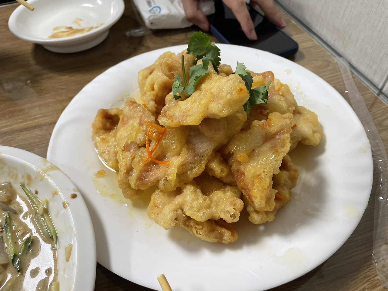 말해 뭐 해 꿔바로우... 정말 최고의 음식이다. 모두가 알고 있는 꿔바로우, 이건 하얼빈에서 나온 음식이며 겉바속촉의 대명사이기도 하다. 밖은 엄청 바삭해서 asmr을 해도 될 정도이며 안에 고기는 꽉 차있으며 육즙이 그대로 살아있다. 그리고 먹기 전에 기침을 하면 그게 진정한 꿔바로우인데 이 집은 먹으려고 하는 순간 기침이 나오기 시작했다. 새콤달콤하며 이 집이 왜 맛집으로 유명한지 알겠는 게 먹고 나서 안 느끼하다는 점이다. 동생이 먹고 정말 맛있다면서 내가 오기 전부터 극찬했었는데 극찬한 이유를 알겠다는 순간이었다.