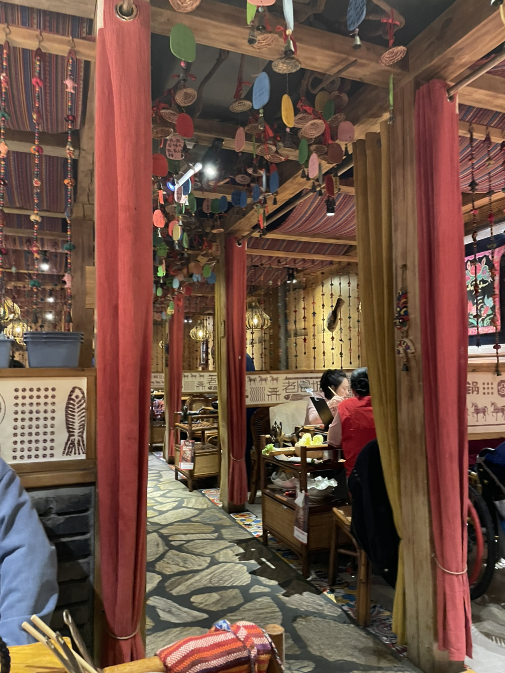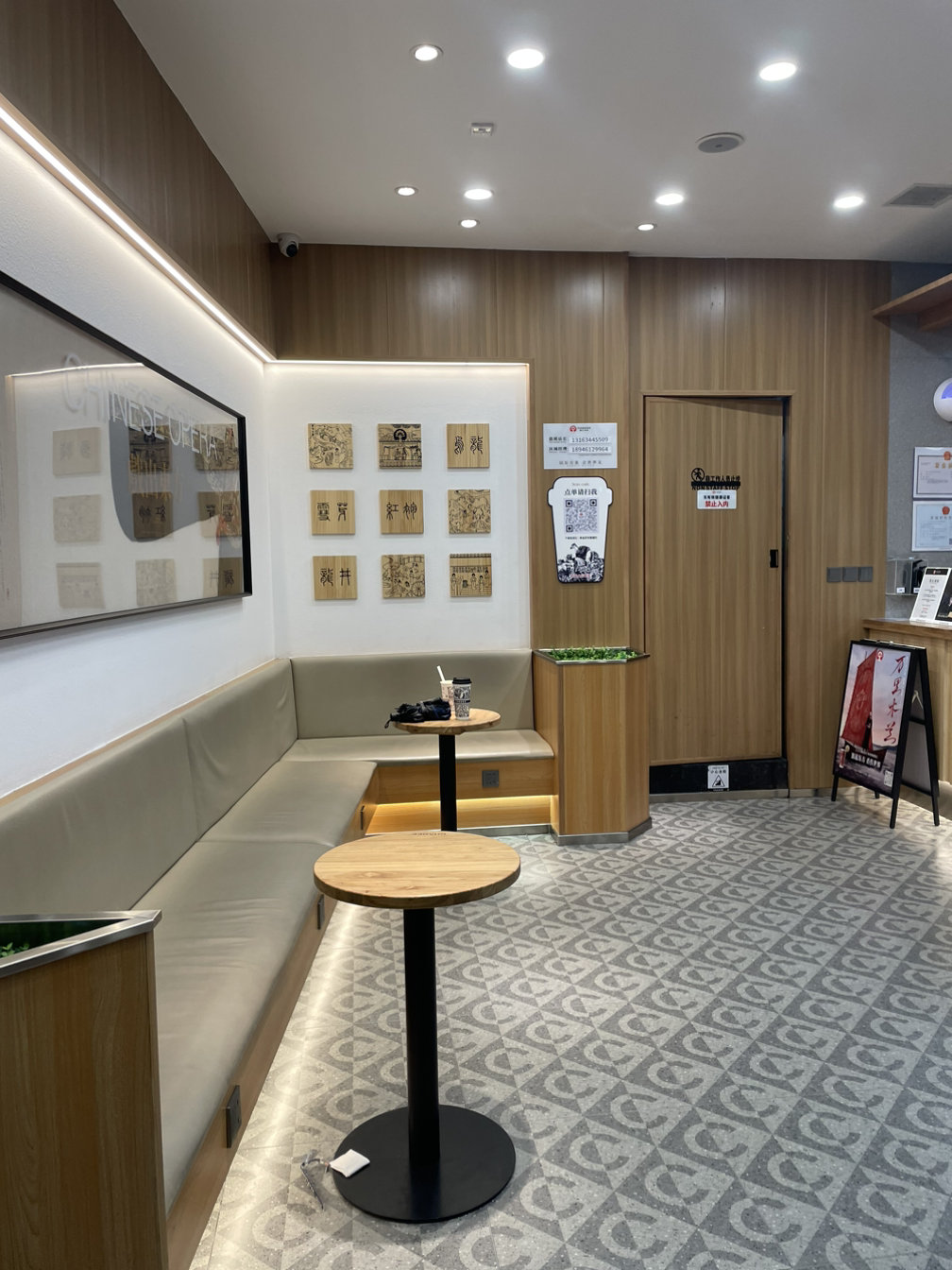 들어오자마자 일단 카페든 식당이든 거의 중국은 QR코드를 스캔해서 주문을 하는 곳이 대부분인데 처음에 알리페이로 스캔을 했다가 안돼서 다시 카운터로 갔다. 그랬더니 카운터 직원이 여기서 직접 태블릿으로 주문가능하다고 해서 다시 주문했다. 제일 괜찮아 보이는 보이차맛의 밀크티 2잔으로 주문했고 하나는 따뜻한 걸로 다른 하나는 차가운 걸로 주문했다. 하나에 16원이었다. 맛은 보이차 맛이 정말 강했고 향도 강했다. 다만, 엄마는 안에 펄이 안 들어가져 있어서 아쉬웠다고 했다. 나도 그걸 기대하고 들어왔는데 밀크티는 나중에 먹기로 했다. 그래도 현지인 친구 말대로 유명해서 그런지 가게 안에는 젊은 사람들이 대부분이었다.