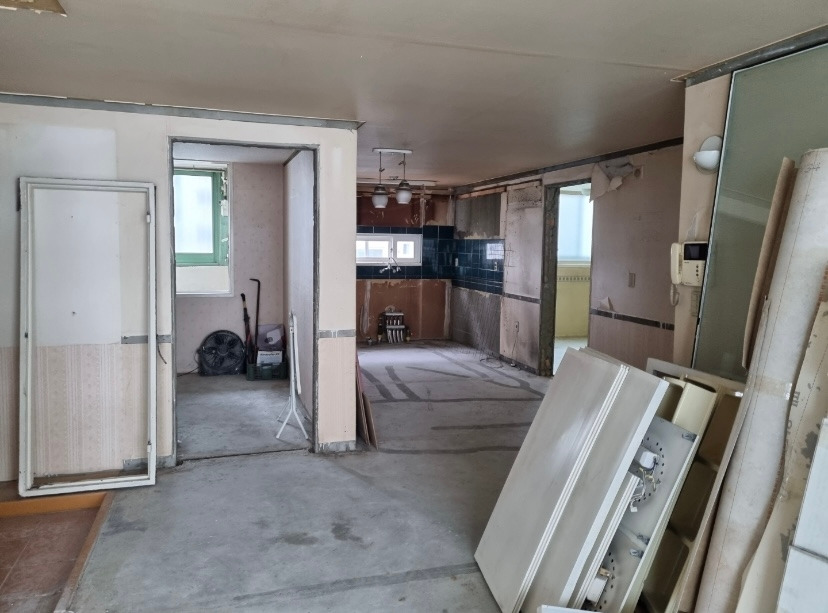 씽크대나 붙박이장 등의 가구를 비롯하여 마루(우리집은 장판이 깔려있었다.), 벽지, 샷시, 문 등을 모두 해체하고 떼어낸다.