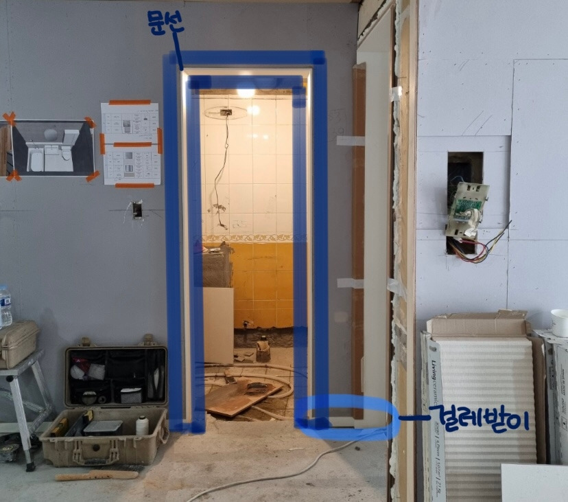 그래서 완벽에 가까운 타일 시공 사진을 받아보았을 때 현장에서 직접 구경하고 싶은 마음을 꾹꾹 참는다고 혼이 났다(당시 나는 생활치료센터에 격리 중이었다.). 나중에 현장 미팅을 할 때 현관 타일을 시공하는 타일러 사장님과 마주쳤는데, “어쩜 이렇게 타일을 칼각으로 붙이셨어요.”라는 나의 칭찬에 마스크 너머로 함박웃음을 지으셨다.