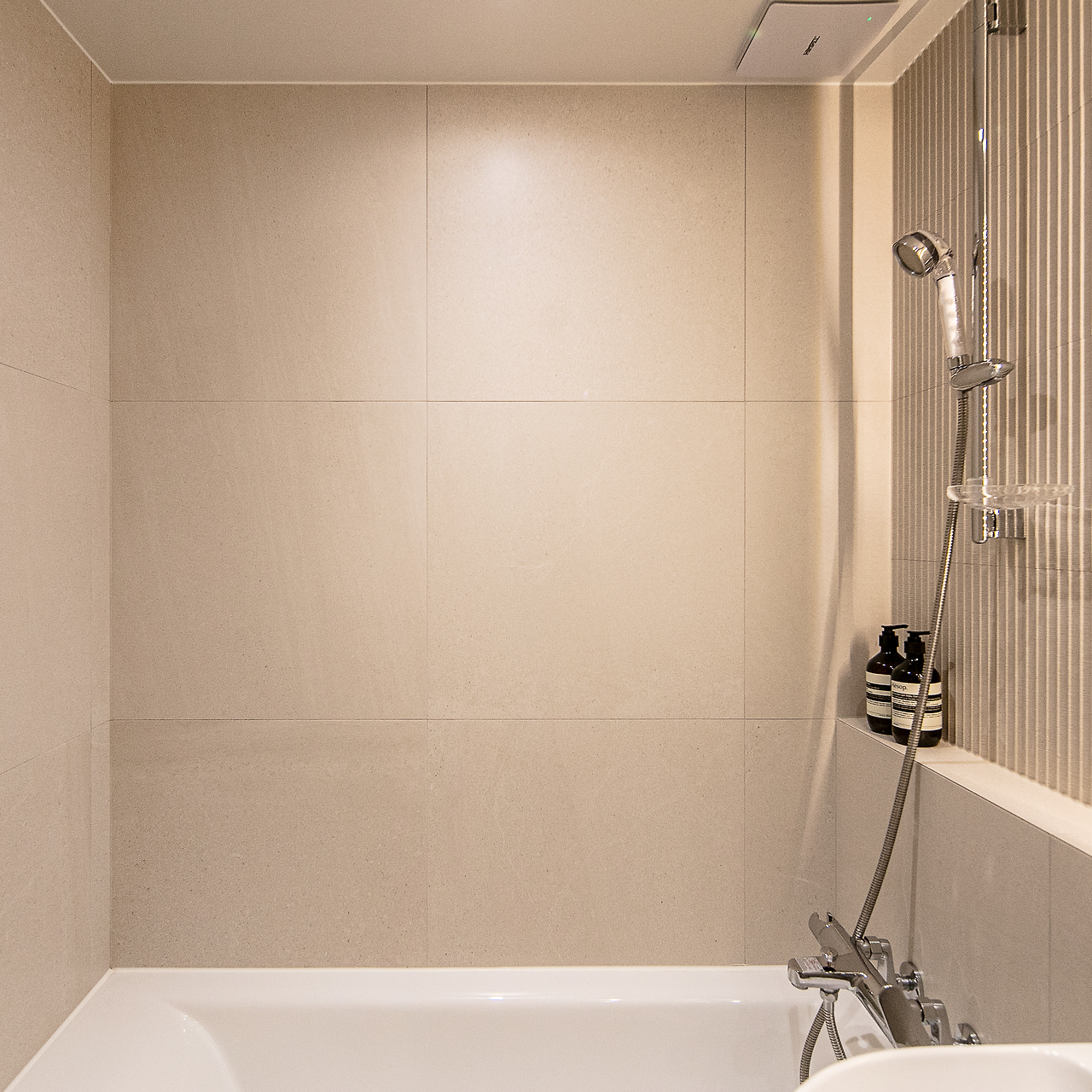 욕실을 어떤 컨셉으로 인테리어 할지 정한 후 우리는 논현동에 있는 윤현상재에 가서 직접 타일을 보고 왔다. 크기별, 질감 별로 디스플레이되어 있는 타일을 눈으로 보고 손으로 만져볼 수 있으며, 쇼룸에 가면 세면대나 욕조 등과 함께 어떻게 스타일링을 했는지 구경할 수 있다.