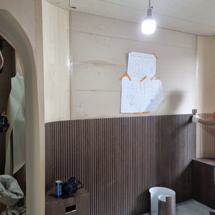 생각보다 많은 부분이 필름으로 마감이 된다. 그래서 하자 보수가 가장 많이 필요한 것이 바로 필름이기도 하다. 처음에 깔끔하게 필름을 부착하였다 하더라도 공사 중 자재를 옮기다가 필름 시공 부분을 스치거나 찍으면 필름이 밀리거나 벗겨진다. 필름을 시공해주신 사장님께서는 공정 중간중간에 필름을 교체하러 오시기도 했고, 모든 공정이 끝난 후에도 하자 보수를 위해 또다시 현장을 방문해주셔야 했다.