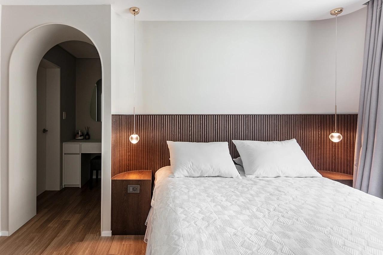 안방 가벽의 템바보드는 원래 소재 자체가 무늬목인 줄 아는 경우가 많은데, 사실 필름 장인의 손길을 거쳐서 예쁜 원목 무늬를 입게 되었다.