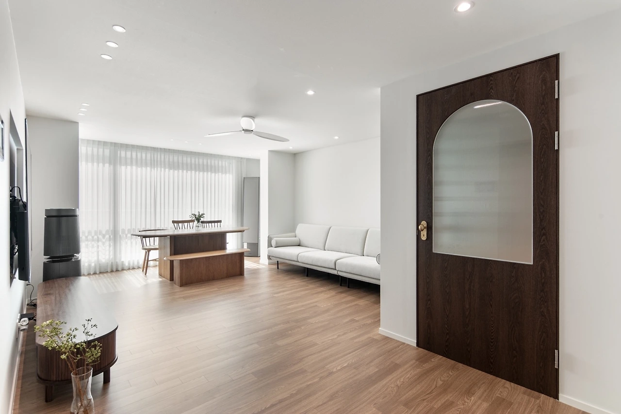 요즘 인테리어는 몰딩을 없애고 걸레받이를 최대한 얇게, 문선(문을 정면에서 보았을 때 보이는 문틀의 부분을 ‘문선’이라 한다.)도 없애거나 얇게 하는 것이 트렌드이다. 무몰딩, 무문선은 공간을 넓어 보이게 하고 깔끔한 인상을 준다는 장점이 있기 때문이다.