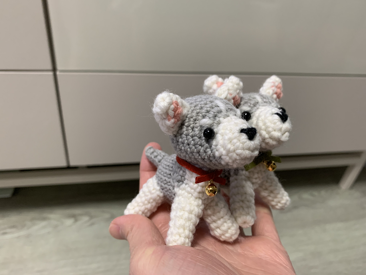 인형을 뜨는 데에 자신감이 붙어서 강아지 인형도 떠보았다. 워낙 작아서 뜨고 난 후 안에 솜을 넣는 작업이 더 힘들었다.