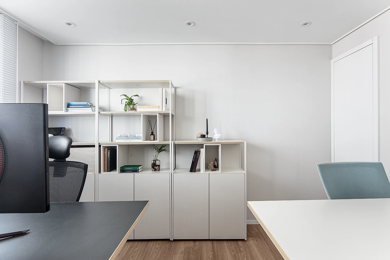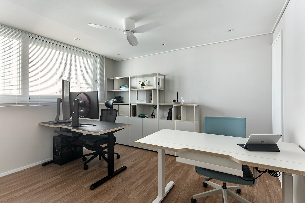 데스커 온라인몰에서 책상과 책장을 미리 봐 두었다. 서재에 책상 두 개와 책장이 들어갈 수 있는지 크기를 확인하고 디자인과 색상도 대충 정하였다. 그리고 강남에 있는 데스커 쇼룸에 갔다. 직접 모션 데스크를 작동해보고 실제 색상과 디자인을 확인했다. 온라인몰보다 쇼룸에서 구입하는 것이 할인 혜택이 컸다. ‘오늘의 집’에서 이벤트를 할 때가 가장 할인 폭이 크다고 들었으나, 아쉽게도 우리가 가구를 구입하는 기간에는 이벤트가 없었다.