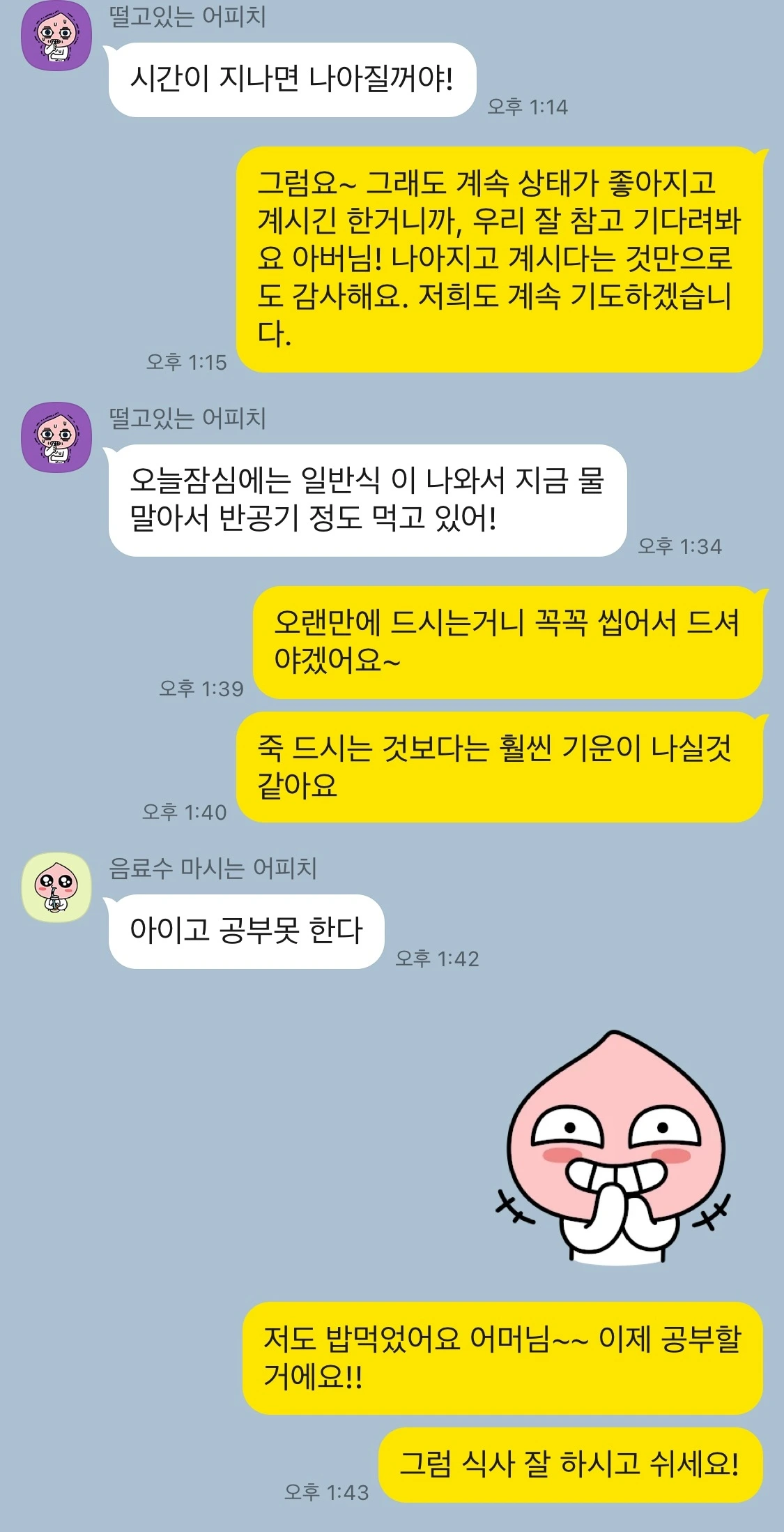 아이가 없는 지금도 공부에 온전히 집중할 수 있는 환경은 아니다. 집안 살림도 해야 하고(이래서 엄마가 해주는 밥 먹을 때 편하게 공부하라는 거구나 하고 절감 중이다.), 연세가 있으신 시부모님도 자주 들여다보아야 한다. 1차 시험 직전에는 시어머님이 수술을 하시고 2주간 병원에 계셨지만, 지금은 퇴원 후 집에서 회복 중이시다.