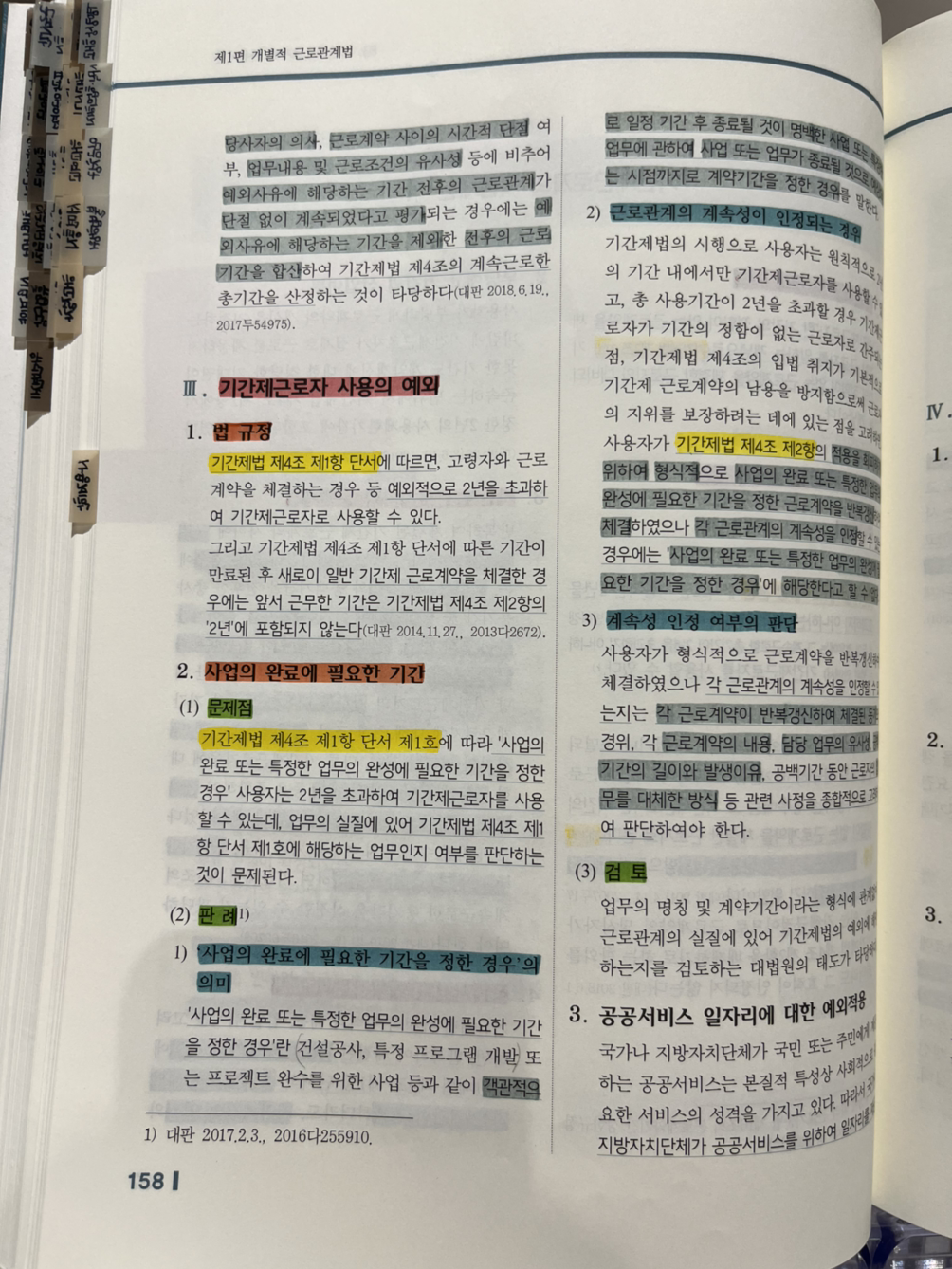 사실 학부시절부터 법조문, 판례, 이론 등을 색깔을 구분하며 밑줄을 긋는 것이 국룰처럼 여겨졌으나(아마도 사법고시 공부법에서 유래됐을 것이다.), 책을 깨끗하게 보는 것을 좋아해서 그 국룰에 따르지 않았었다. 공인노무사 수험생활 1~2년 차 때까지만 해도 수험서가 깨끗했다.