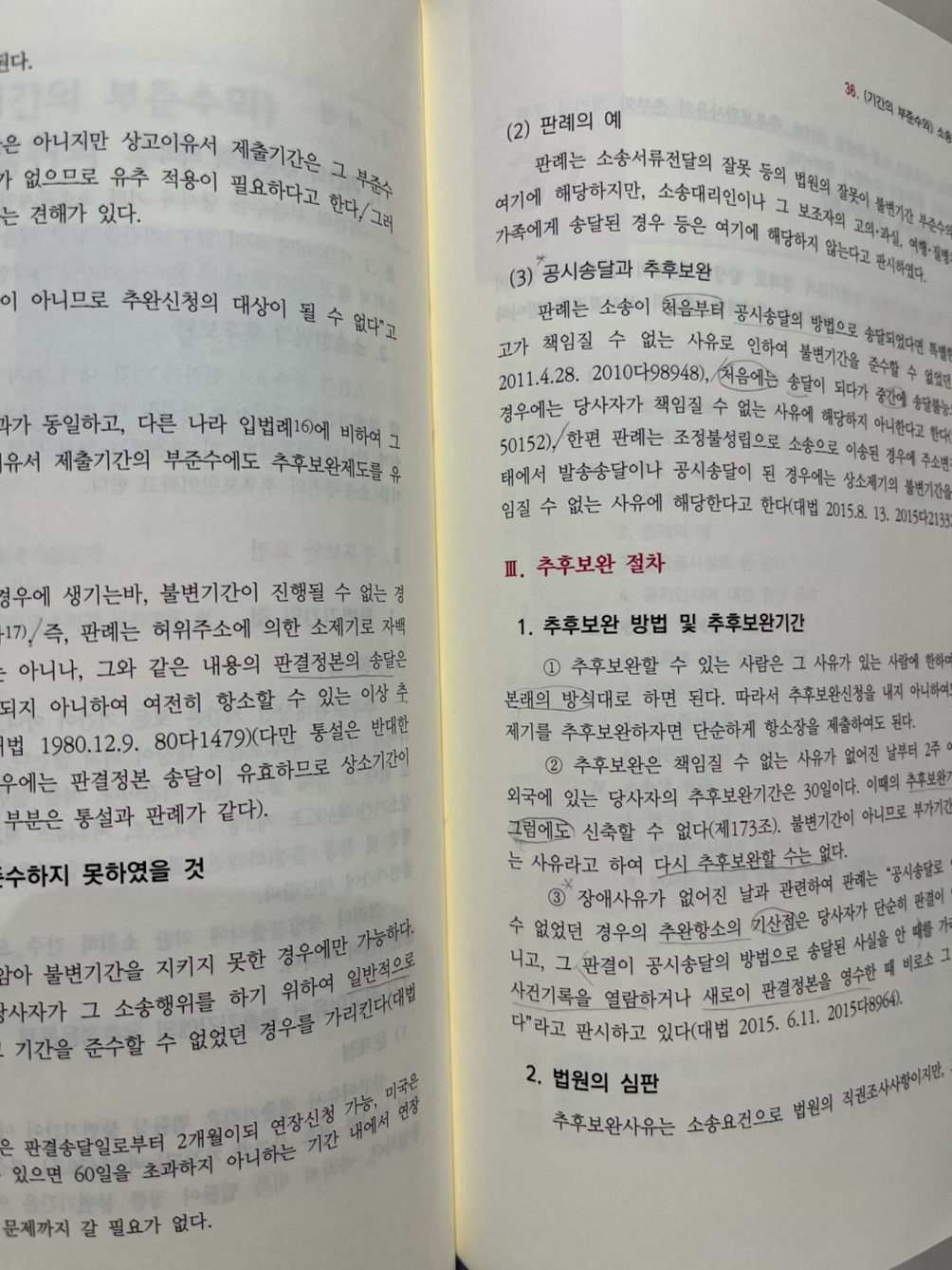 그 많은 양을 시험 직전까지 다 보려면 목차만 보아도 서술되어야 할 법조문이나 이론, 판례가 술술 떠오르고, 그 이후엔 어떤 쟁점이 나와야 하는지도 막힘없이 생각나야 한다. 중간에 "어?" 하면서 막히는 구간이 반복되면 목표 달성에 실패하게 된다.