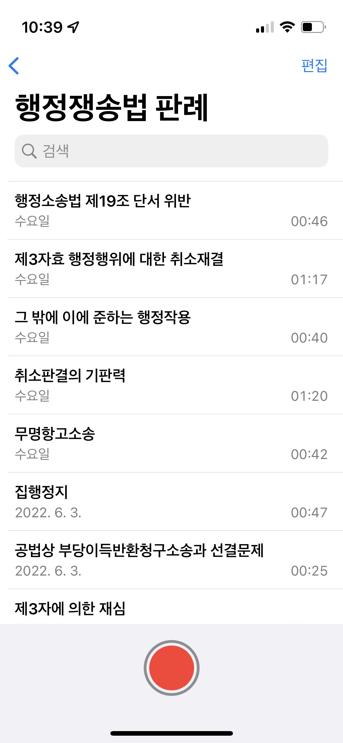 녹음도 하면 할수록 더 많은 판례를 녹음해야 할 것 같은 기분이다. 중요한 판례는 다 녹음했다고 생각했는데, 책을 보다 보면 또 새로운 녹음 대상이 보인다. (목소리나 발음이 마음에 안 들어서) 여러 번 반복해서 녹음하다 보면 어느 정도 판례가 외워지는 효과도 있으니 새로 눈에 들어오는 판례가 있으면 또 녹음을 한다.