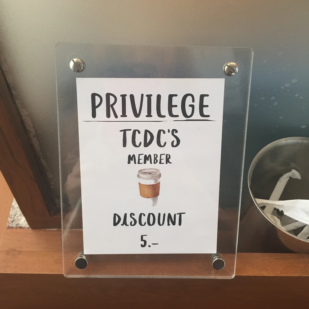 TCDC의 원데이 패스(1 day pass)는 100바트, 연간 패스(1 year Pass)는 600바트였다. 영어를 굉장히 잘 하는 직원분에게 이용규정을 설명 받으며 원데이 패스를 등록했다. 친절한 직원분이 오후 5시 이전에 요청하면 오늘 이용료를 포함해 연간권으로 바꿀 수 있다고 하였다. 치앙마이에 오래 머물며 자주 올 생각이라면 연간 패스가 좋을 것 같다.
