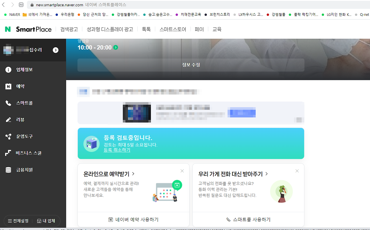 잔금을 입금하자마자 가장 먼저 사업자등록증 주소 변경을 신청했다. 요즘은 신규로 사업자를 내는 것도, 변경이나 수정도 홈택스에서 한 번에 다 해결된다. 처리도 빨라서 단 몇 분 만에 변경된 사업자등록증을 곧바로 인쇄할 수도 있다. 새로 받은 사업자등록증을 사진 파일로 저장해 놓고서 다음엔 네이버 스마트 플레이스 등록을 신청했다. 업종 등록을 무엇으로 할 것인지 키워드 선택이 가장 중요한 것 같다. 필수 항목들을 입력하고 준비해 둔 파일을 첨부하면 된다. 등록 검토하는 데에 5일 정도가 소요된다고 한다. 추가 사항은 나중에 언제든 수정할 수 있다.