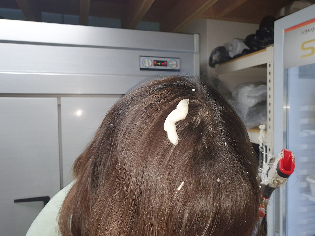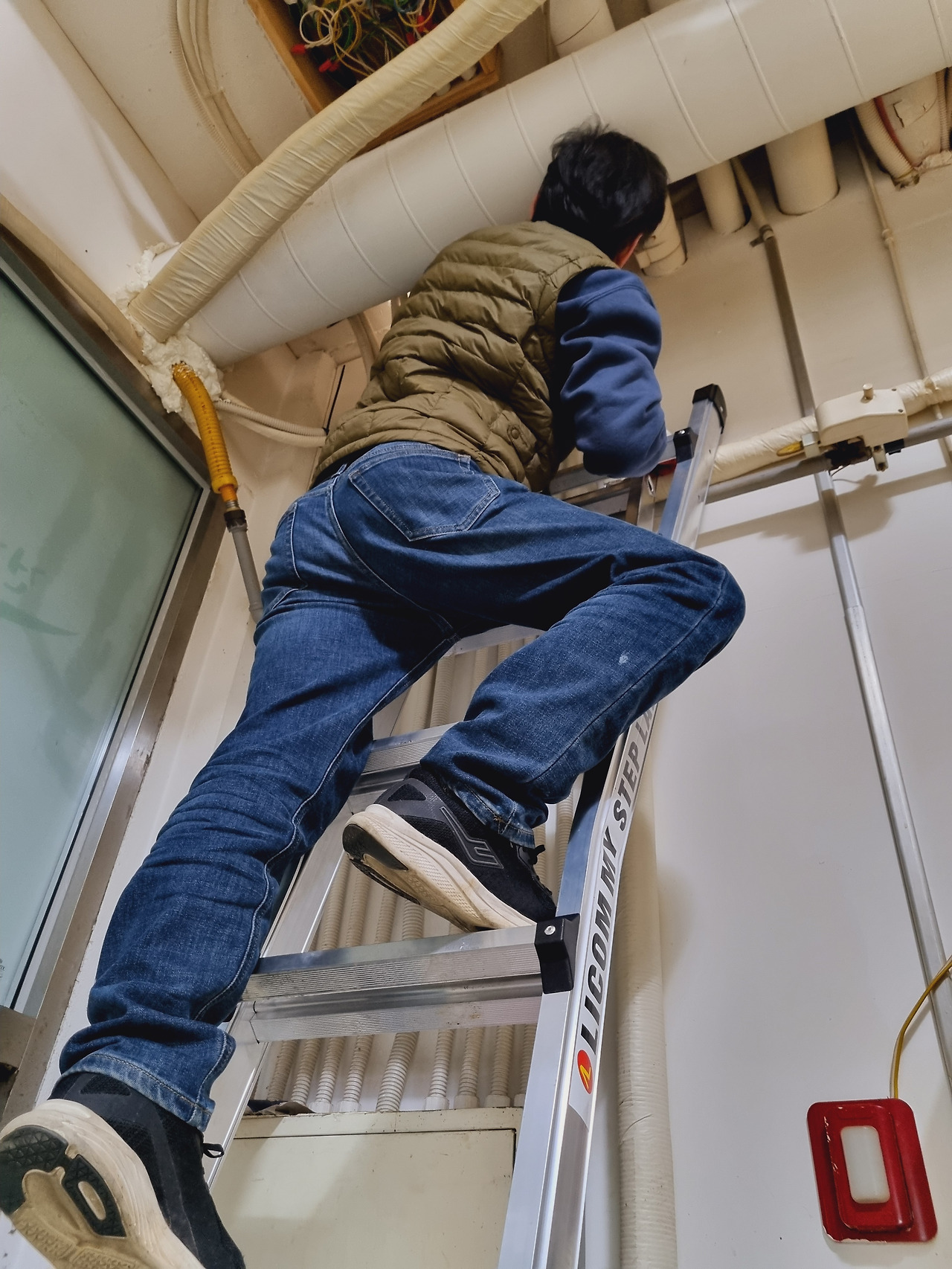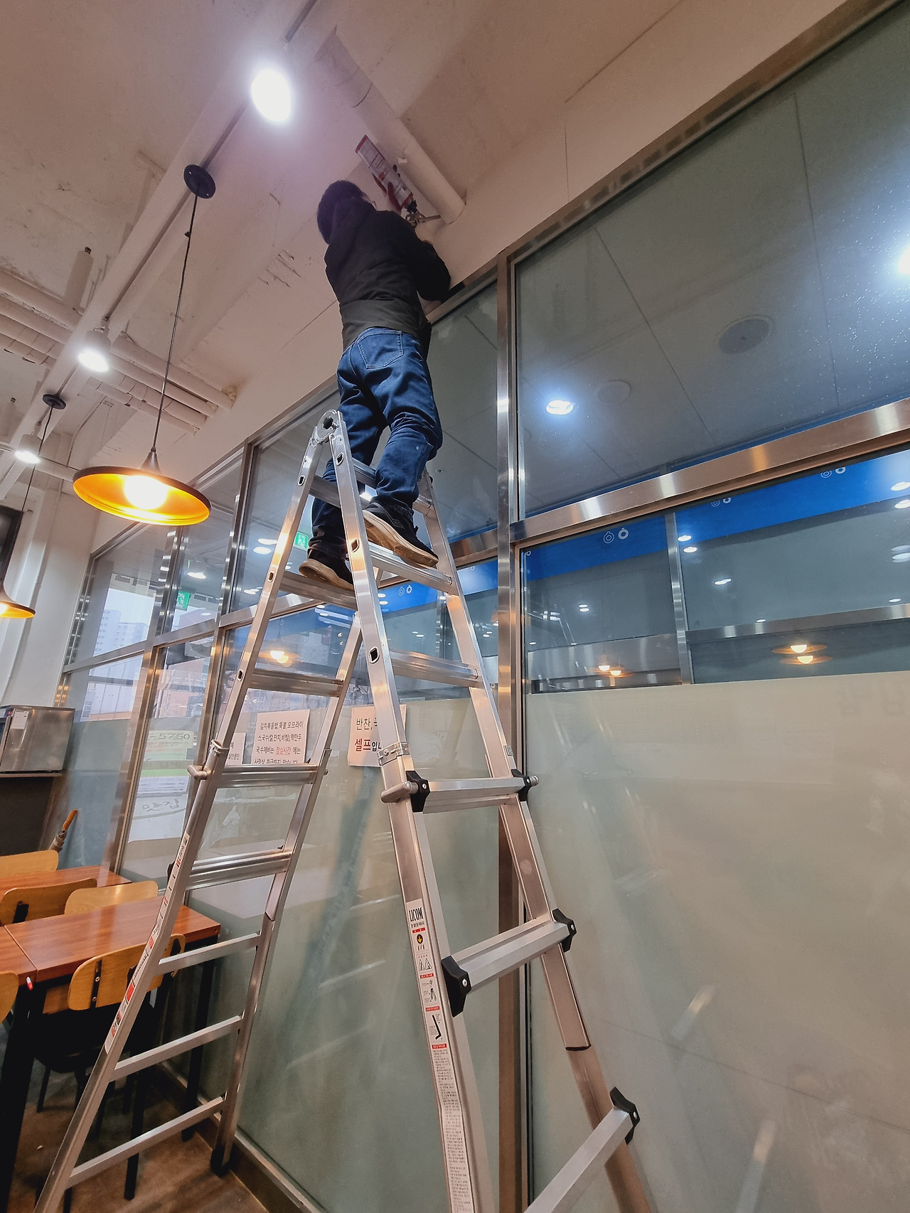 사다리 작업은 2인1조가 기본이다. 밑에서 안전하게 잡아주고? 지켜봐주고! 우레탄 폼 세례는 덤!
