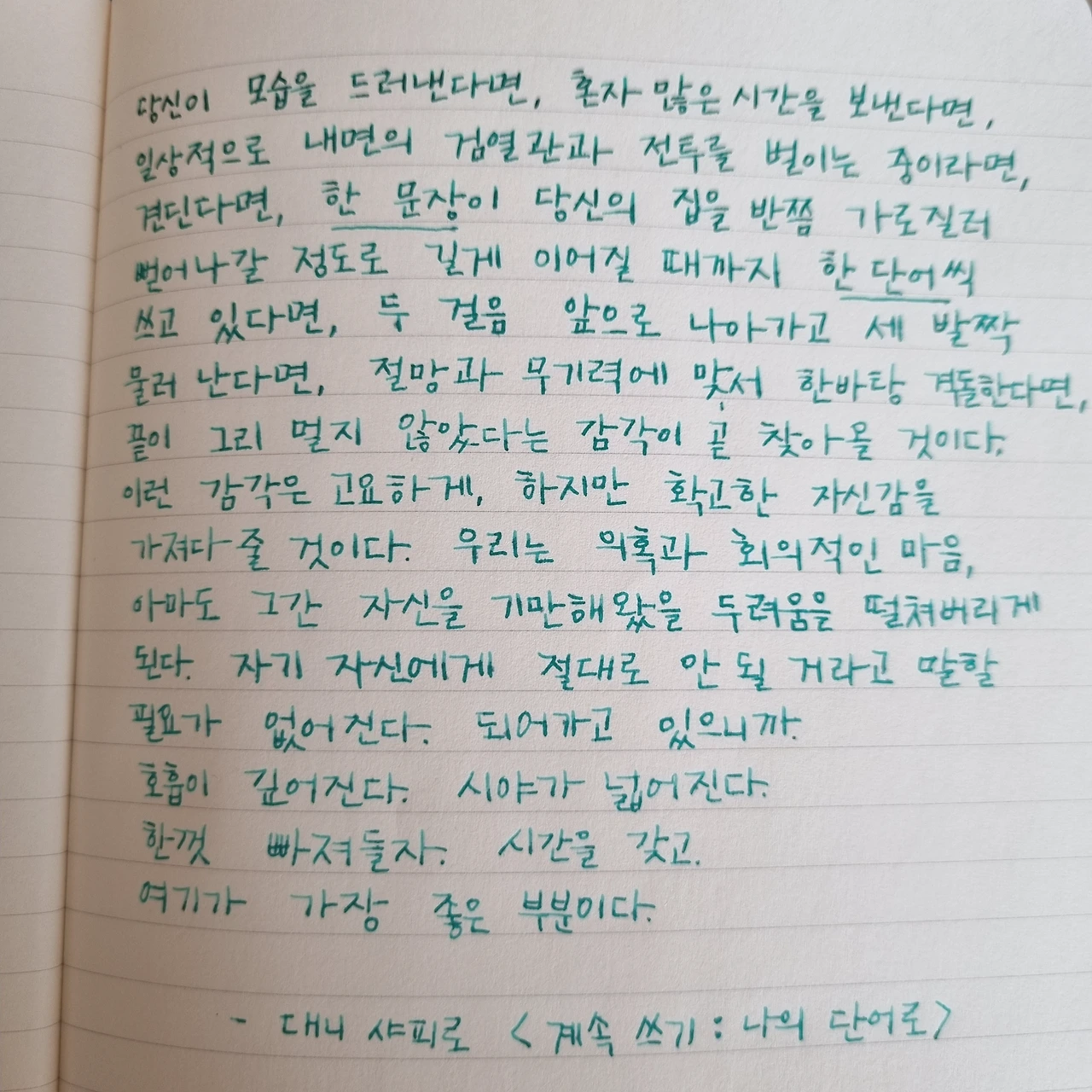 종이는 만년필이 사각사각 잘 써지는 재질이어야 해요.