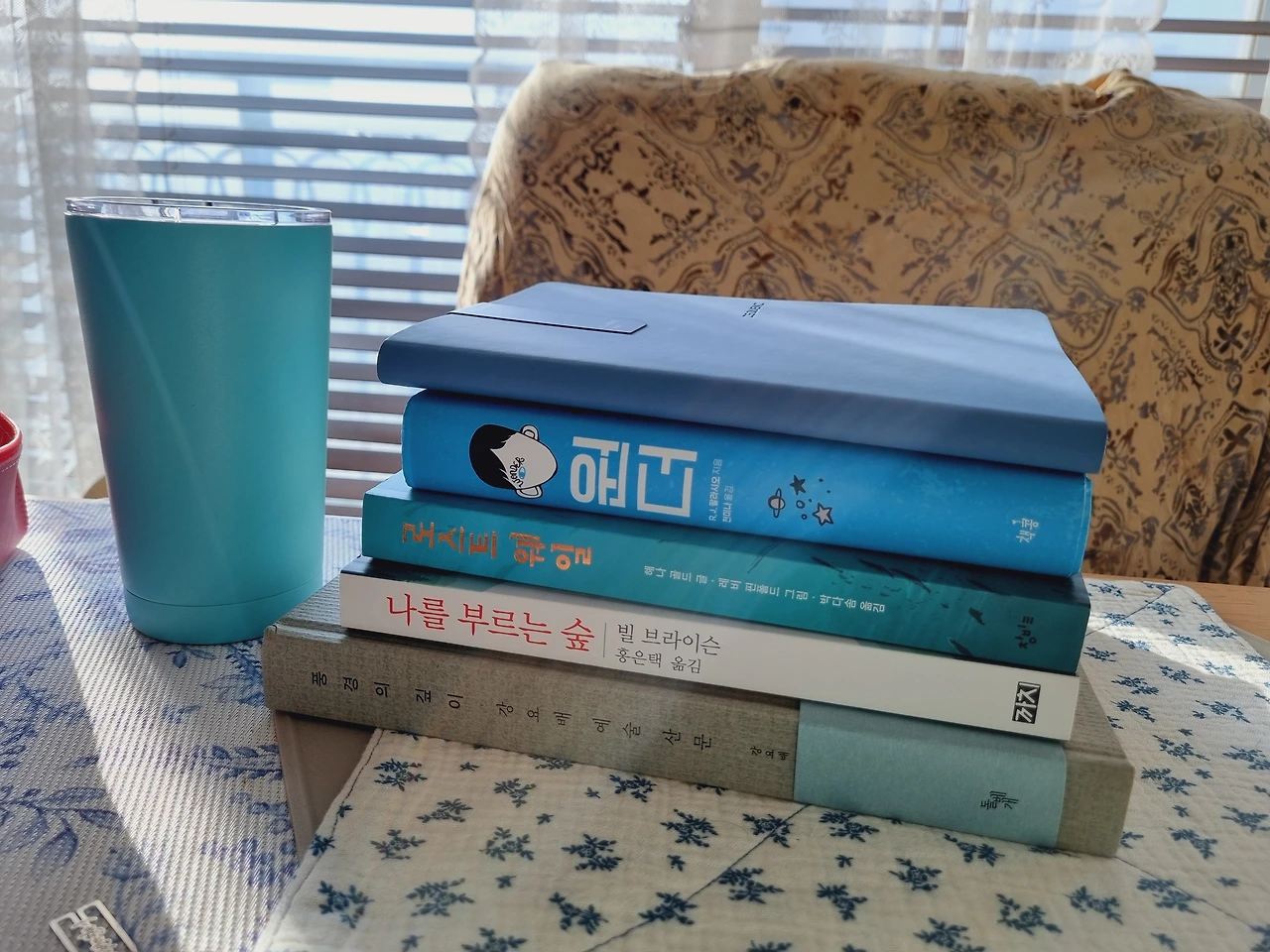읽고 있는, 읽기를 기다리는 친구들. 앵글 밖에도 많아요, 전자책도 있지요. 집 무너지면(?) 안 되니까 읽고 나서 나눔도 하고