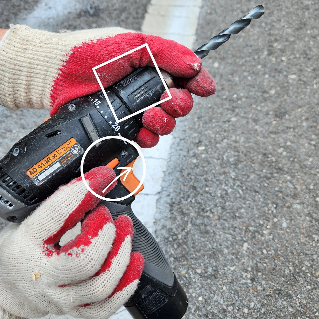 화살표가 그려진 방향대로 오른쪽을 누르면 감기, 왼쪽을 누르면 풀기! 필요한 비트를 끼운 후 네모가 그려진 부위만 잡고 작동시켜야 한다.