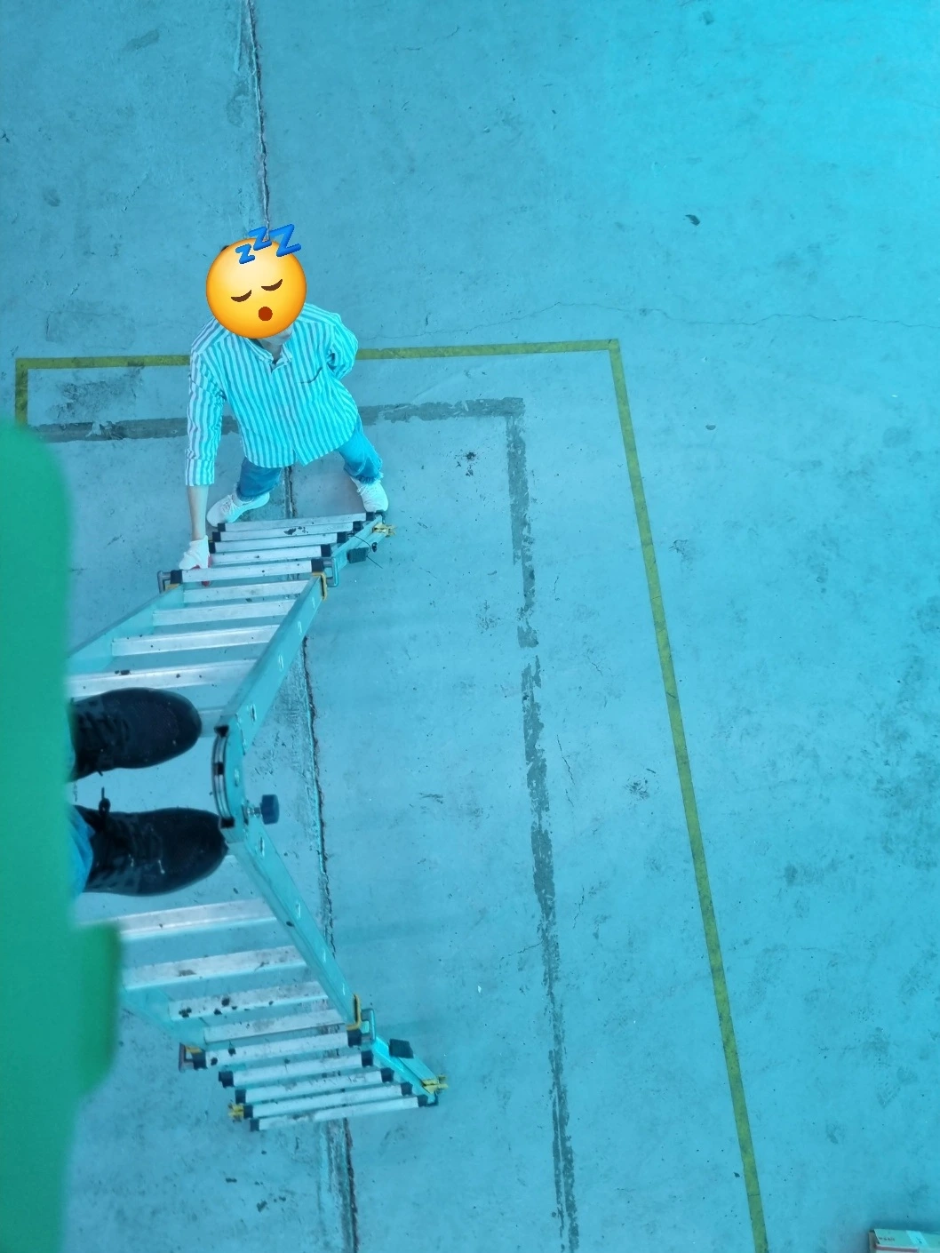 사다리 밑을 지키는 자, 서서 자는 경지에 이르다?(원래 사다리 위에는 이렇게 서면 안됩니다! 아주 안 좋은 예시!)