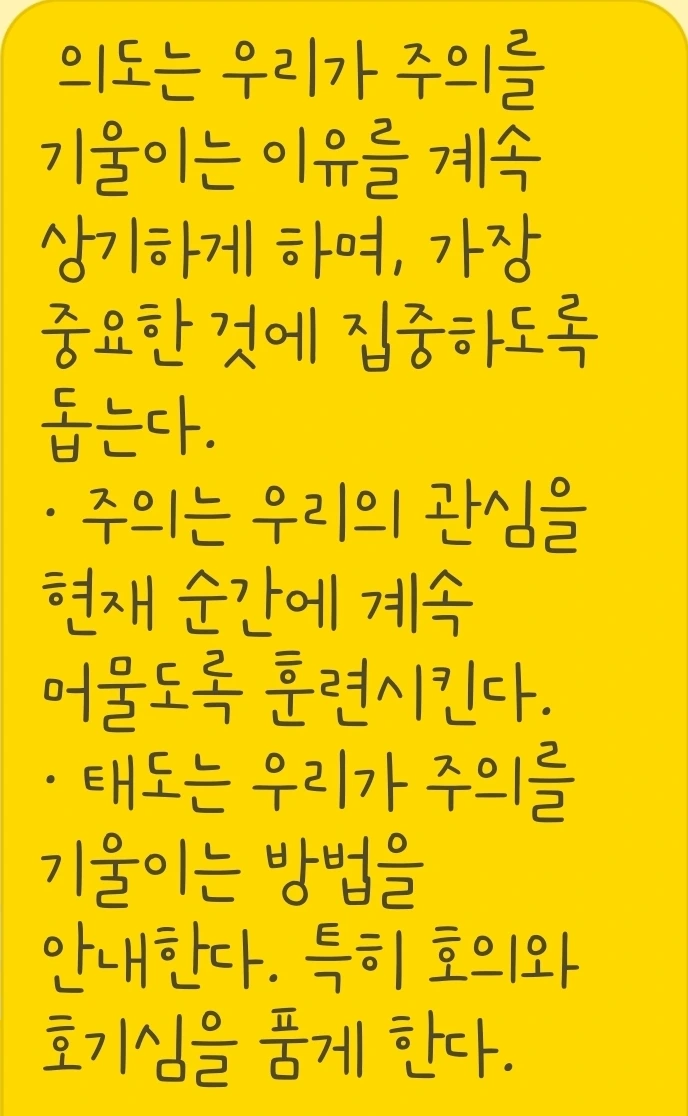내 마음이 평온해지길내가 행복해지길내가 건강해지길내 마음이 자애로 충만하길.내게(당신에게) 평화가 깃들기를내가(당신이) 안전하게 보호되기를내가(당신이) 행복하기를내게(당신에게) 사랑과 호의가 가득하기를.세상 만물에 평화가 깃들기를세상 만물이 안전하게 보호되기를세상 만물이 행복하기를세상 만물에 사랑과 호의가 깃들기를.