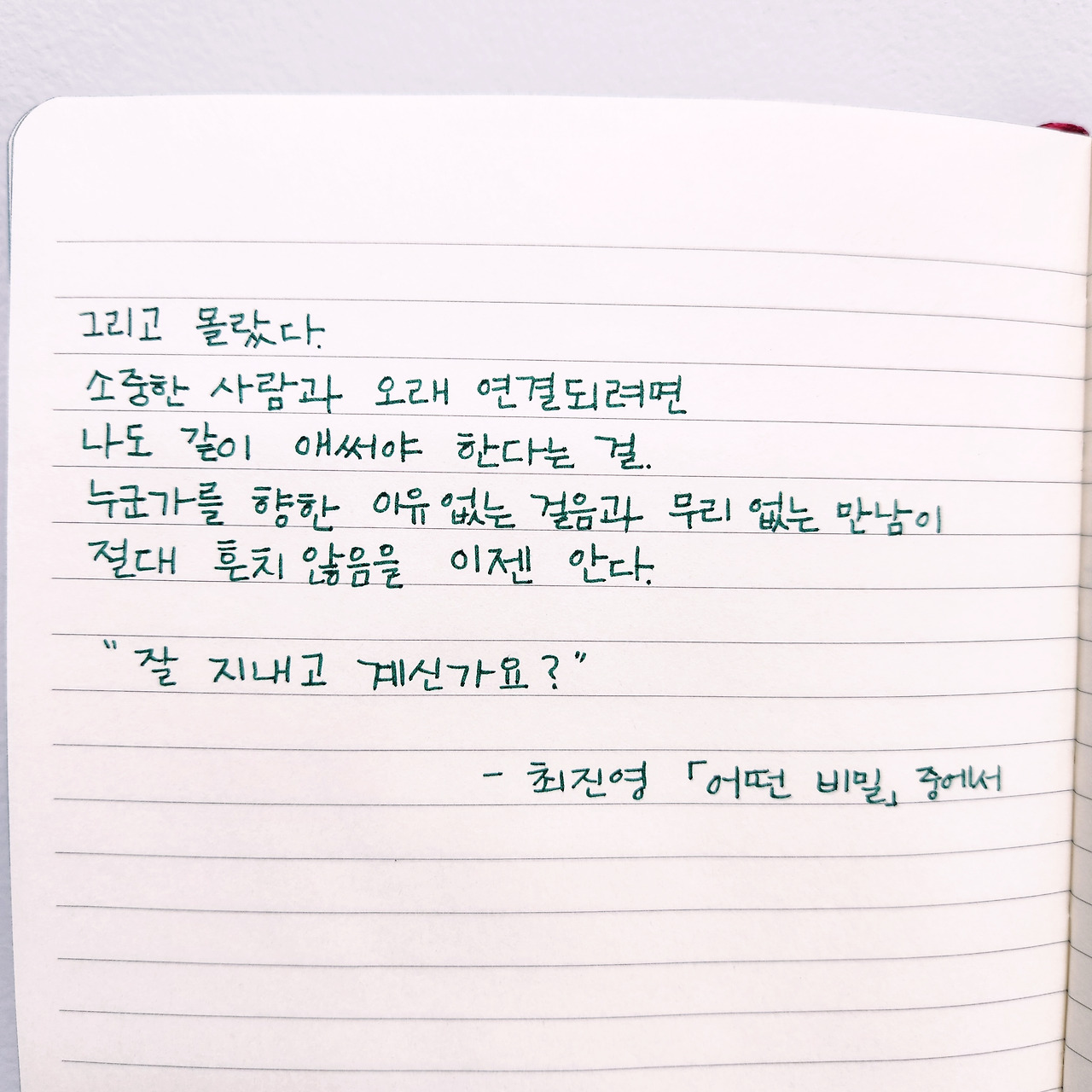 소중한 사람과 오래 연결되려면 나도 같이 애써야 한다는 걸. 누군가를 향한 이유 없는 걸음과 무리 없는 만남이 절대 흔치 않음을 이젠 안다.