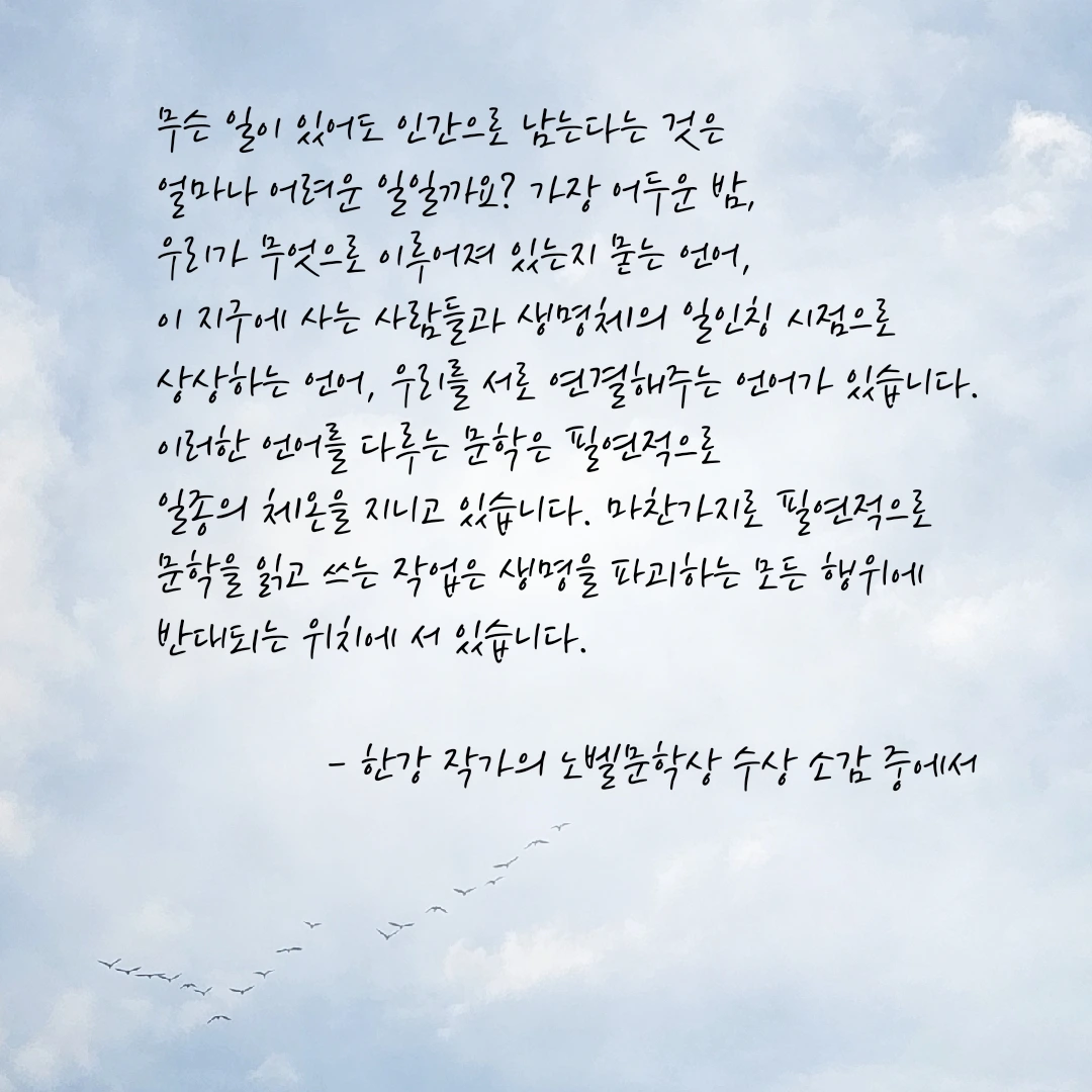 - 한강 작가의 노벨문학상 수상 소감 중에서
