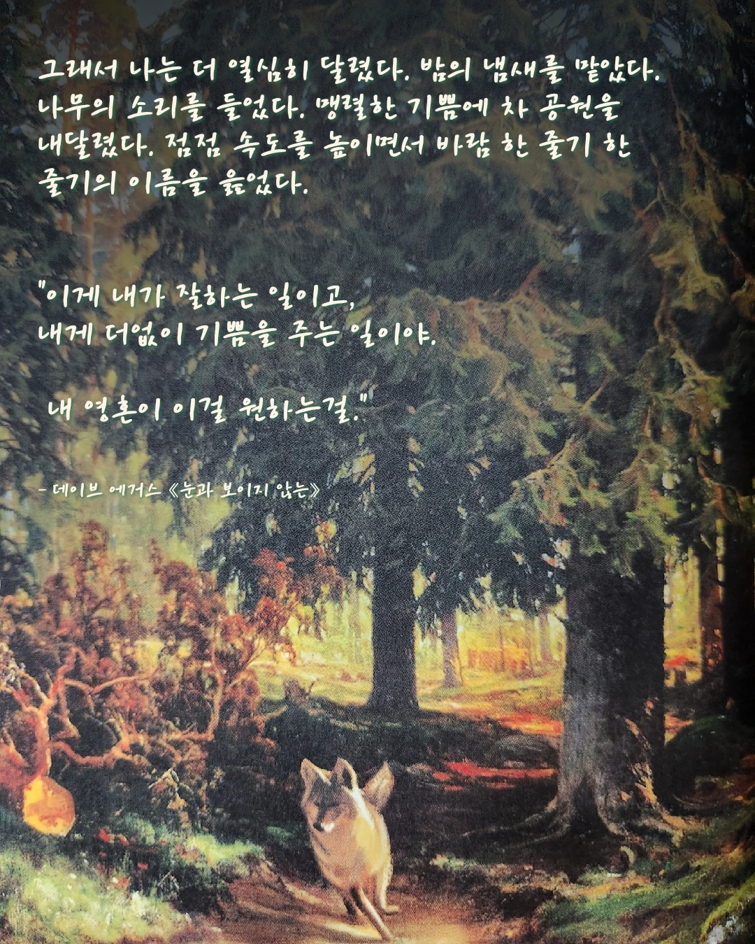 전혀 말이 되지 않지만, 어쩐지 내 뼛속 깊이 새겨둔 수많은 질문에 답인 것만 같았다.