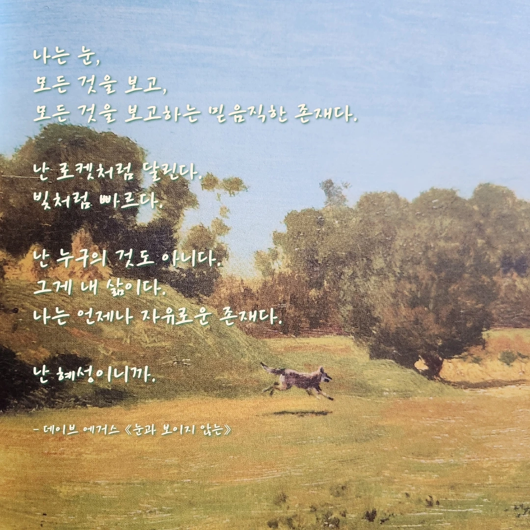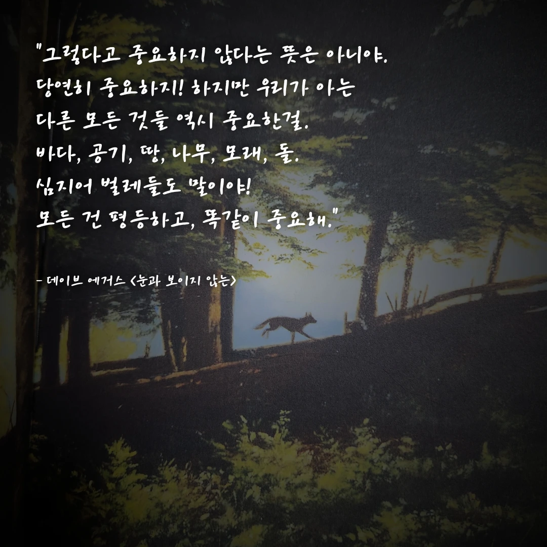 그 모든 것이 그 사각형 안에 담겨 있는 게 무섭기도 했고, 말이 되는 것 같기도 했고, 나아가 편안함이 느껴지기도 했다.