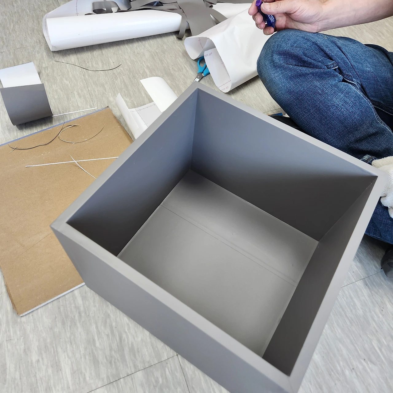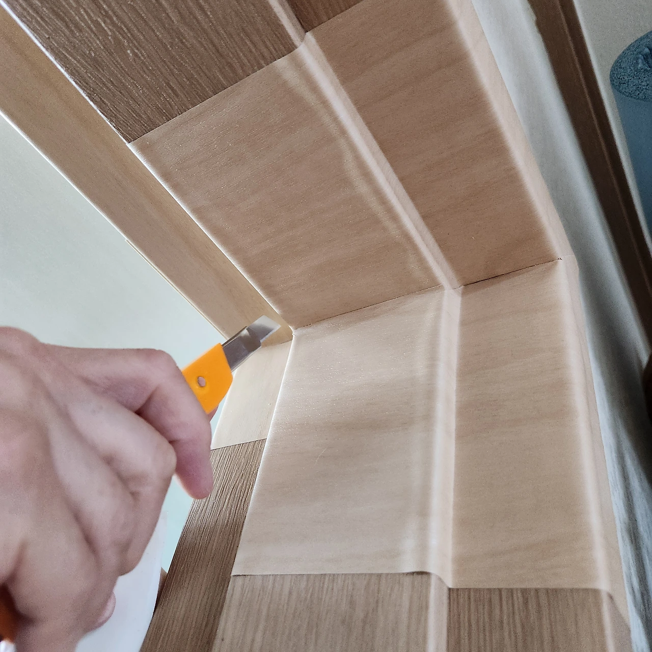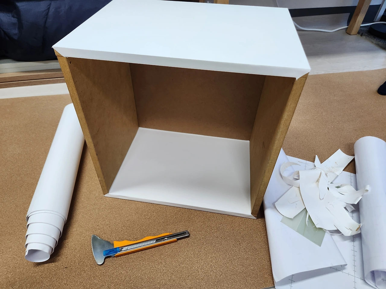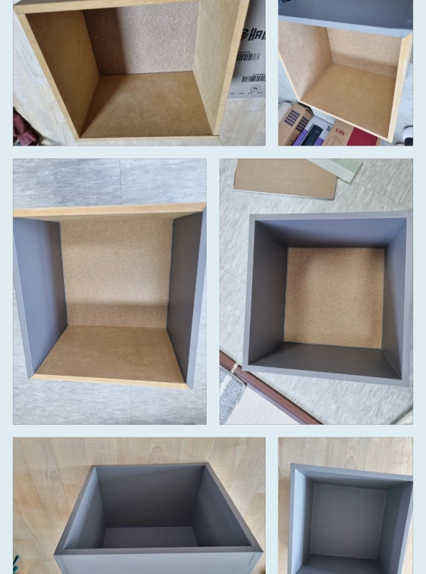 마음을 먹으면 한 치의 망설임도 없이 바로 실행해 옮기는 사수의 집요함은 실로 놀랍다. 연습만이 살 길이라든 듯 새벽 3시가 훌쩍 넘었는데도 동굴에 불이 훤히 밝혀져 있다. 기존에 어느 정도 웬만큼 할 수는 있지만, 거기서 그치지 않고 영역을 넓히고 작업 속도를 높이고 디테일과 모서리 마감을 집중적으로 연마하기 시작했다. 문틀과 방문 모서리란 모서리는 다 찾아다니며 혼자서 열심히 레벨업을 해내고 있다. 창고에 넣어두었던 공간 박스를 꺼내다가 새 옷도 입힌 덕에 조수만 득템했다. 안 버리길 잘했네. 사수의 손끝 기술은 아무리 봐도 완도 명사십리의 모래만큼 곱고 섬세하다. 매직 금손! 마이크로 골든 터치!
