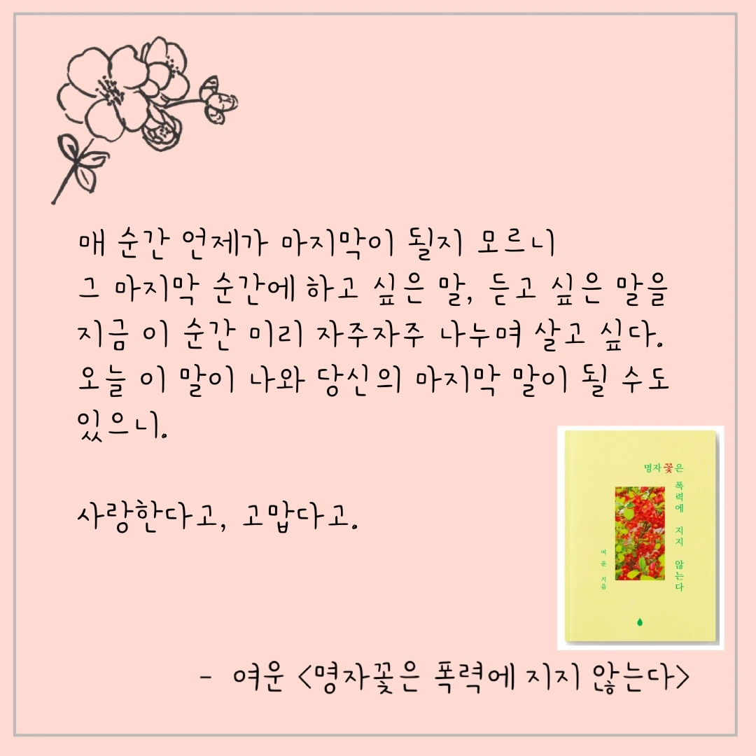 - 여운 《명자꽃은 폭력에 지지 않는다》 중에서