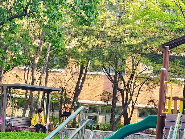 그리고, 그 모든 풍경을 내내 지켜보시던 할머니 한 분. 개나리빛 샛노란 겉옷을 걸치고 볕이 오래 머무는 놀이터 벤치에 마지막까지 한참을 앉아계신다. 그곳이 당신의 정해진 자리인듯 내내 한 번도 움직이지 않으셨다. 마침내 아이들이 모두 떠나자 맨 마지막으로 몸을 일으키신다. 할머니도 충전 중이셨나 보다. 내 마음 나도 모르게 그 옆에 함께 앉아 있었나 보다. 햇볕도 좋고 꽃도 좋지만, 사람은 사람으로 충전한다. 생명은 생명으로 서로 화답한다. 이 작은 공간에 생명이 흘러 넘친다.