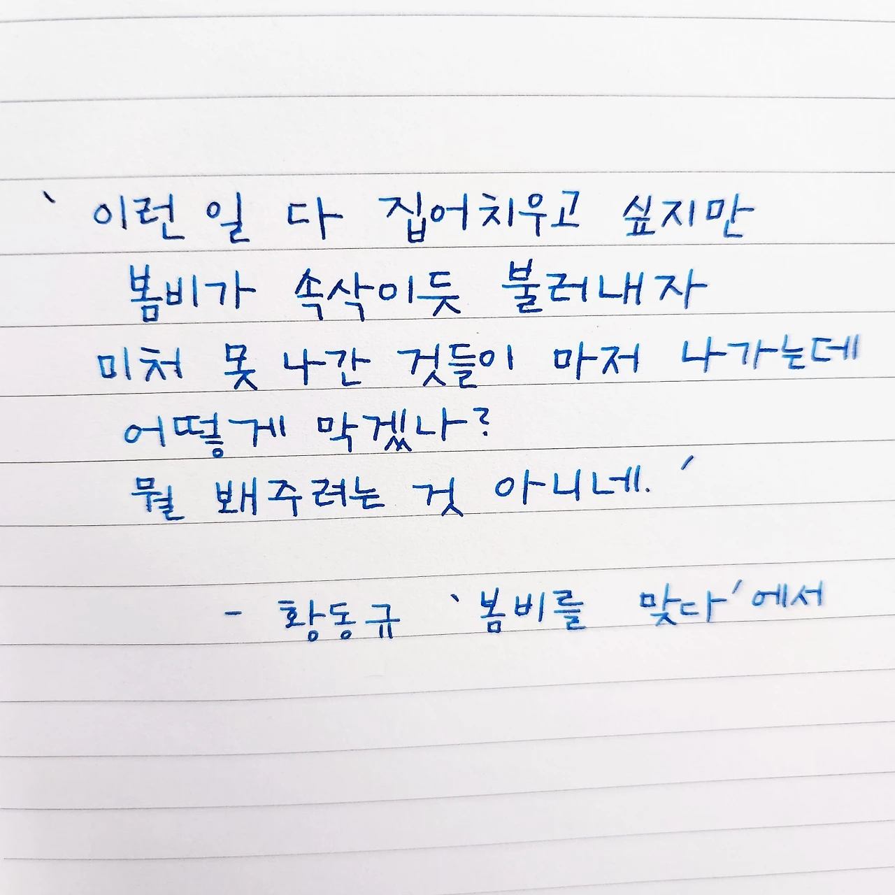 - 황동규 '봄비를 맞다' 중에서