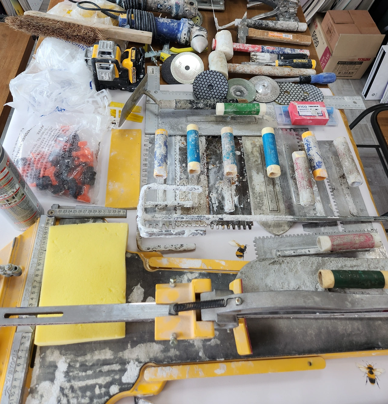그래도 교육비를 내고 참여는 했으니 처음에 서로 통성명을 하고 인사를 나눈 후, 대전에서 그 유명하다는 성심당 빵도 나눠먹고 이런저런 이야기를 나누는 모습을 곁에서 조용히 지켜보았다. 여러 다양한 도구와 재료들도 살펴보고 가장 먼저 준비된 시연은 타일 절단이었다. 사수가 늘 익숙하게 해 오던 작업이고, 조수도 사수를 도우며 직접 타일을 잘라 본 경험이 있어서 다들 그 정도는 그냥 웬만큼 쉽게 하는 줄로 알았다. 그런데 그게 아니었다. 배움을 잘 받아들이지 못하는 모습이었다. 어렵지 않은 설명에도 불구하고 듣는 것도 들은 대로 행하는 것도 잘 되지 않고 어색해 보였다. 물론 누구나 처음이 있고, 초보자의 마음으로 배우러 온 것이니 서툴고 실수할 수도 있는 것은 당연하다. 기술적으로 잘하고 못하고를 떠나서 뭐랄까? 매우 경직된 태도랄까? 인사를 나눌 때도 그랬다. 누군가는 먼저 다가와 인사도 반갑게 나누고 자연스럽게 대화의 물꼬를 트는 사람이 있는가 하면, 건네는 인사만 무뚝뚝하게 받고 목석처럼 가만히 서계시는 분도 계셨다. 새로운 배움을 받아들이는 자세와 태도에서도 그 결은 고스란히 묻어났다. 물론 나이 차이도 있었겠지만, 그곳에서 적지 않은 나이에 속하는 사수도 있었으니 꼭 나이때문만은 아니리라. 끊임없이 낯선 공간에서 새로운 사람들을 계속 만나고 새로운 기술을 익히고 펼쳐야 하는 집수리 현장의 특성상 유연한 소통 능력과 받아들임의 자세가 참 중요하다는 걸 새삼 깨닫는 자리였다.