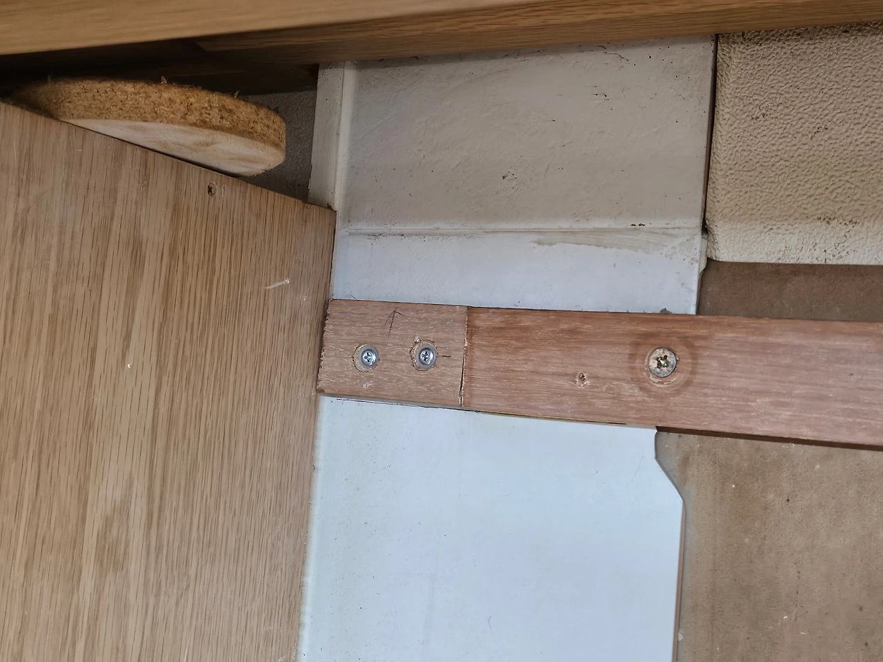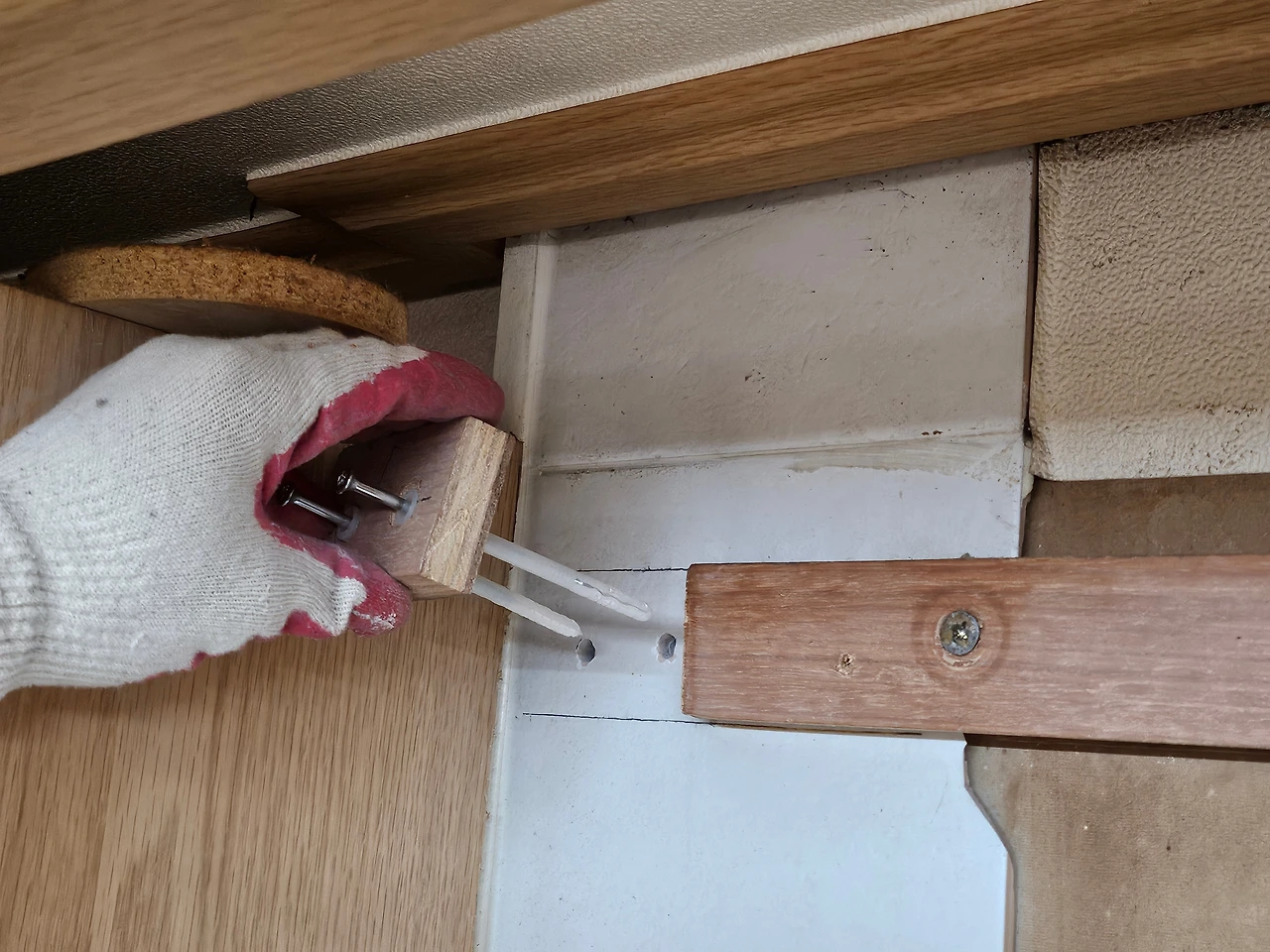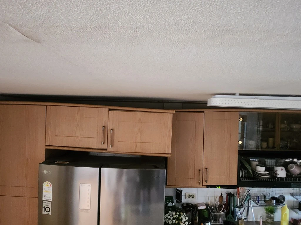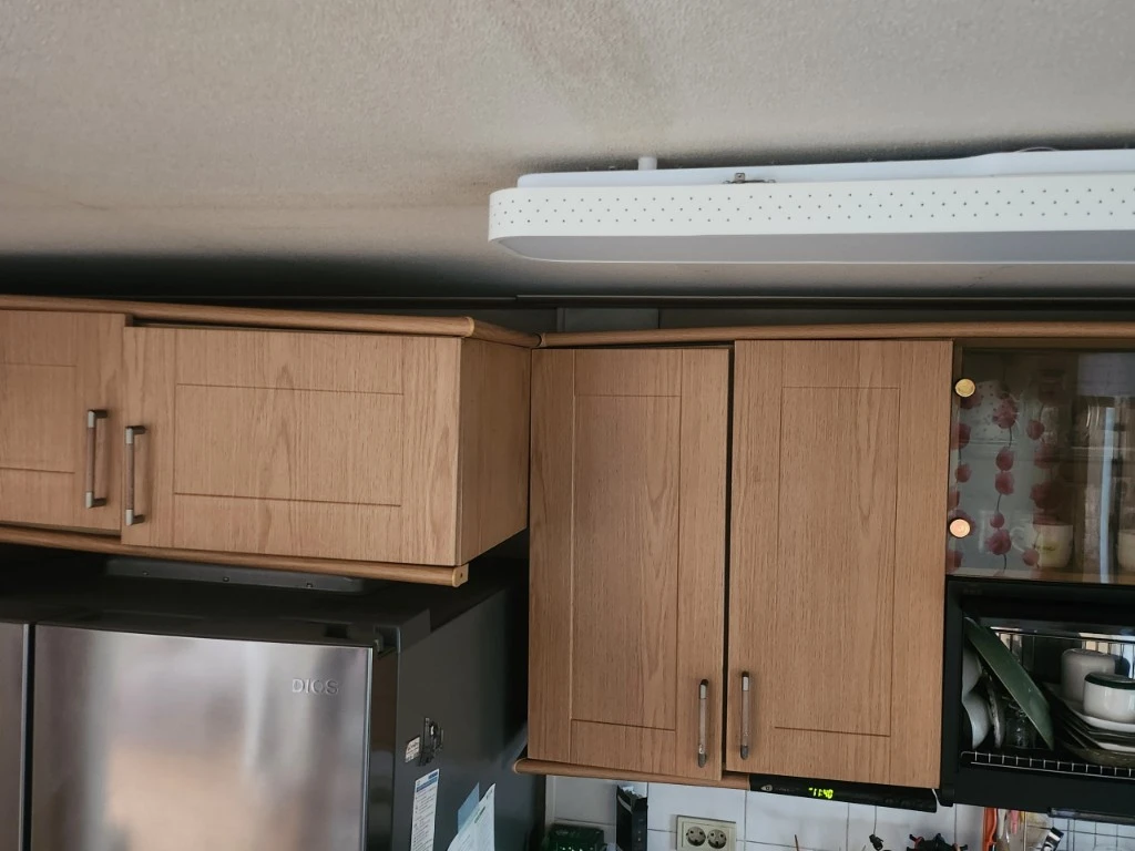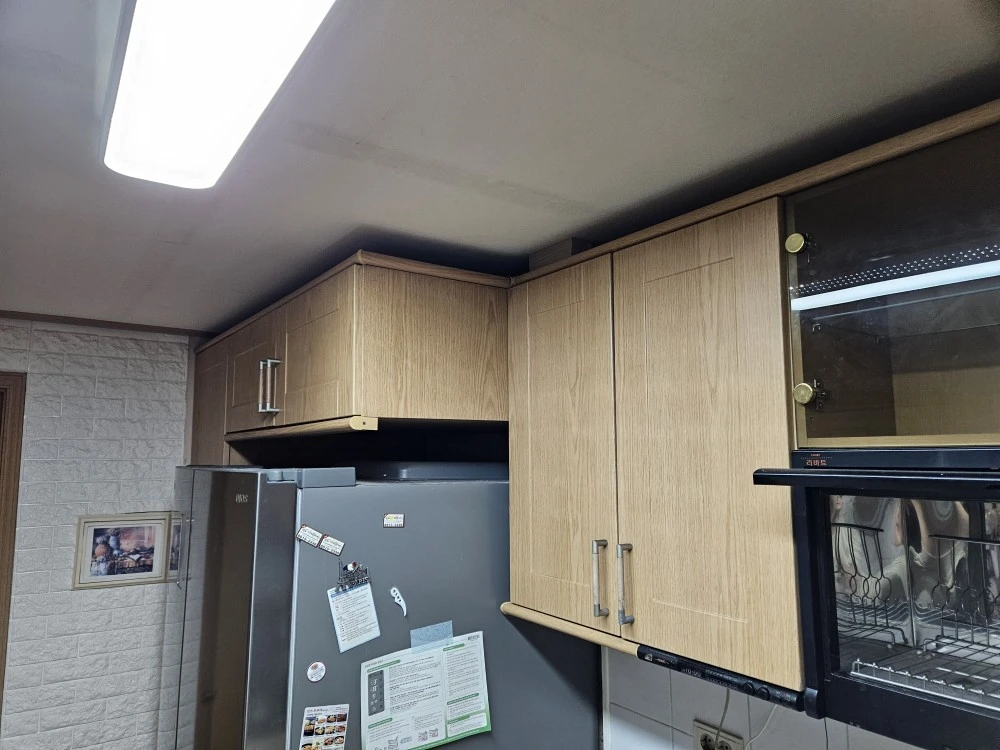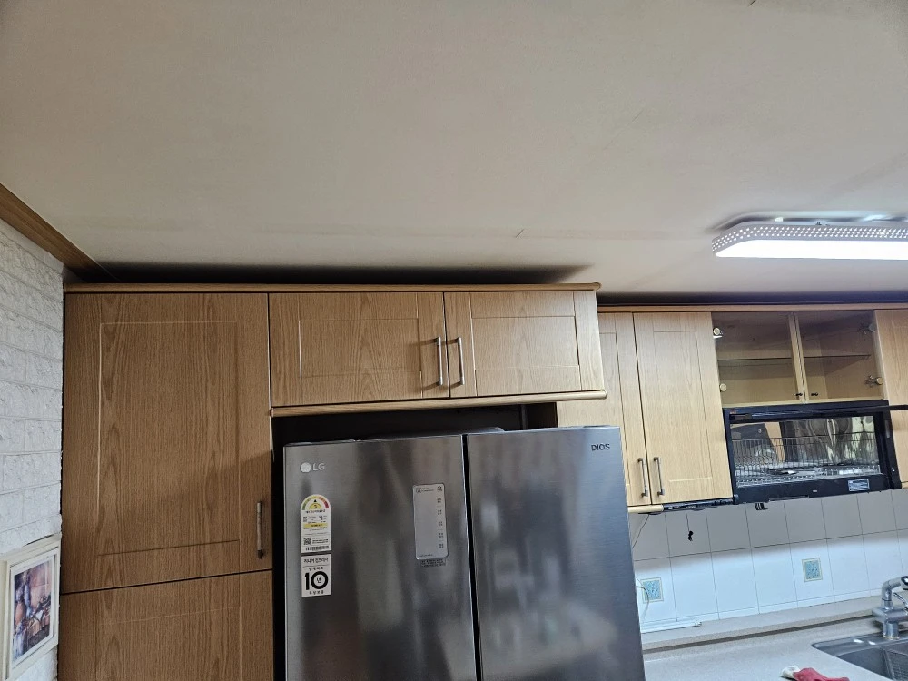 같은 아파트 같은 라인 다른 세대로부터 같은 작업을 요청받았다. 싱크대 상부장 처짐이다. 이 작업을 또 하게 될 줄 몰랐다. 위험부담이 너무 커서 피하고 싶은 작업 중에 하나였다. 구조적 특성으로 공중부양되어 있는 싱크대 상부장이 세월 속에 버티고 버티다 처지다 못해 곧 쏟아져 내릴 듯한 모습으로 가까스로 매달려 있었다. 아마도 이 아파트에 많은 세대들이 비슷한 상황을 겪고 있지 않을까 싶다.