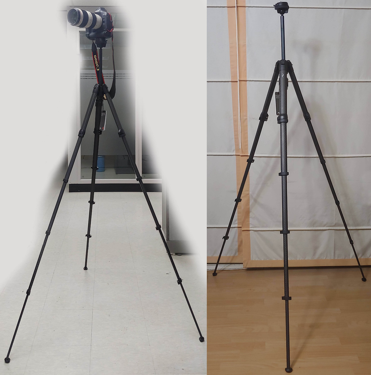 'Travel Tripod 5 Section CARBON'은 각진 다리와 중심 기둥을 절묘하게 겹쳐 빈 공간을 최소화했다. 그래서 크기가 획기적으로 줄었다. 작아 보이지만 펼친 뒤 카메라를 받치는 중앙 기둥을 최대로 올리면 높이가 150 cm에 이른다. 카메라를 올려놓으면 167cm인 내가 거의 똑바로 서서 촬영할 수 있는 높이다.