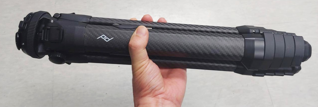 Peak Design의 'Travel Tripod 5 Section CARBON'은 한 손에 들어온다.