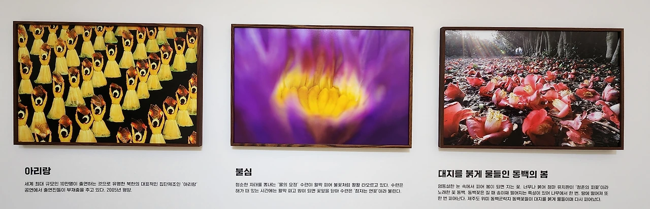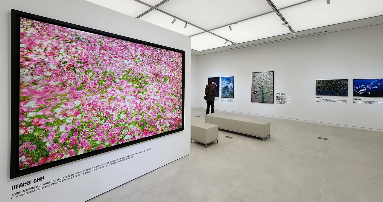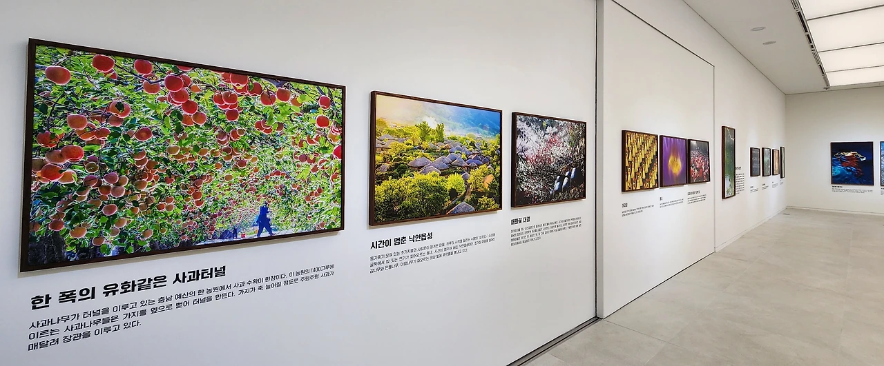 전시장에는 김 기자가 지난 7년간 와이드 샷 게재 사진과 미공개 사진 90여 점을 볼 수 있다. 일부는 대형 모니터를 통해 볼 수 있다. 전시회 주제를 ‘자연’으로 잡았고 선택한 사진들이 동식물을 포함한 자연 풍경이다. 김 기자는 약간의 콘트라스트 조정과 실제 현장에서 본 느낌을 살리기 위해 포토샵을 사용했다. 과한 색감 보정이나 수정이 없는 사진들이다. 그러기에 우리는 편안하게 자연 속에 들어가 풍경을 감상할 수 있다. 새벽안갯속 김제 평야의 햇빛을 볼 수 있고 아침 햇살 아래 갯벌 사이로 흐르는 옥색 바닷물을 본다. [빈모]