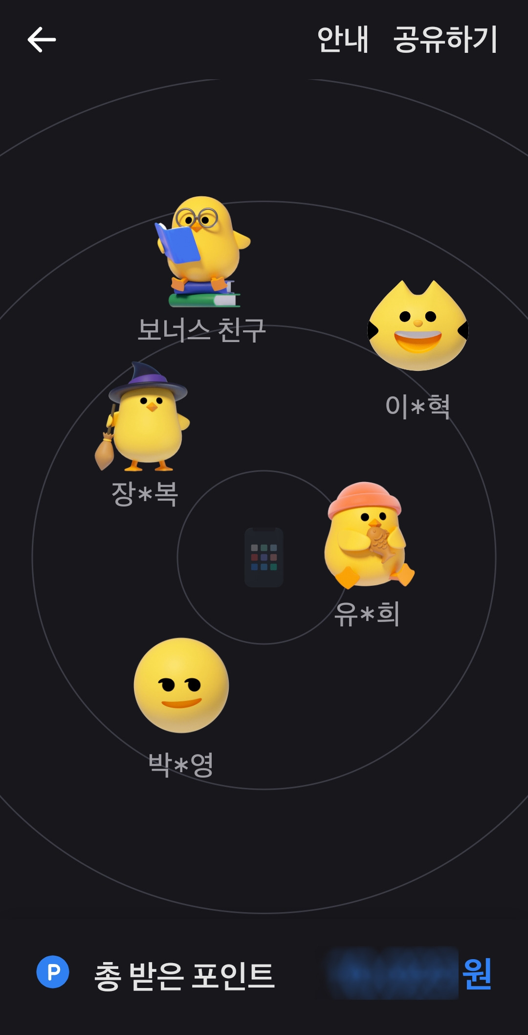 주변 사람들에게 물어봤다. 10원씩 줄 때부터 포인트 받기를 한 사람을 만나길 바랐지만 1원씩 받을 때부터 했다는 답뿐이었다. 1원씩 받을 뿐인데 왜 이렇게 하냐고 물었다. 답은 몇 가지로 나왔다. '게임 같아 재밌다.' '점심 먹고 산책하다가 소액(몇 백 원에서 많아야 1천여 원)이지만 공돈 생기는 즐거움' '한 글자 지워진 주변 사람 이름과 함께 나오는 아이콘을 누르면 톡톡 터지는 재미' 한 마디로 재미였다.