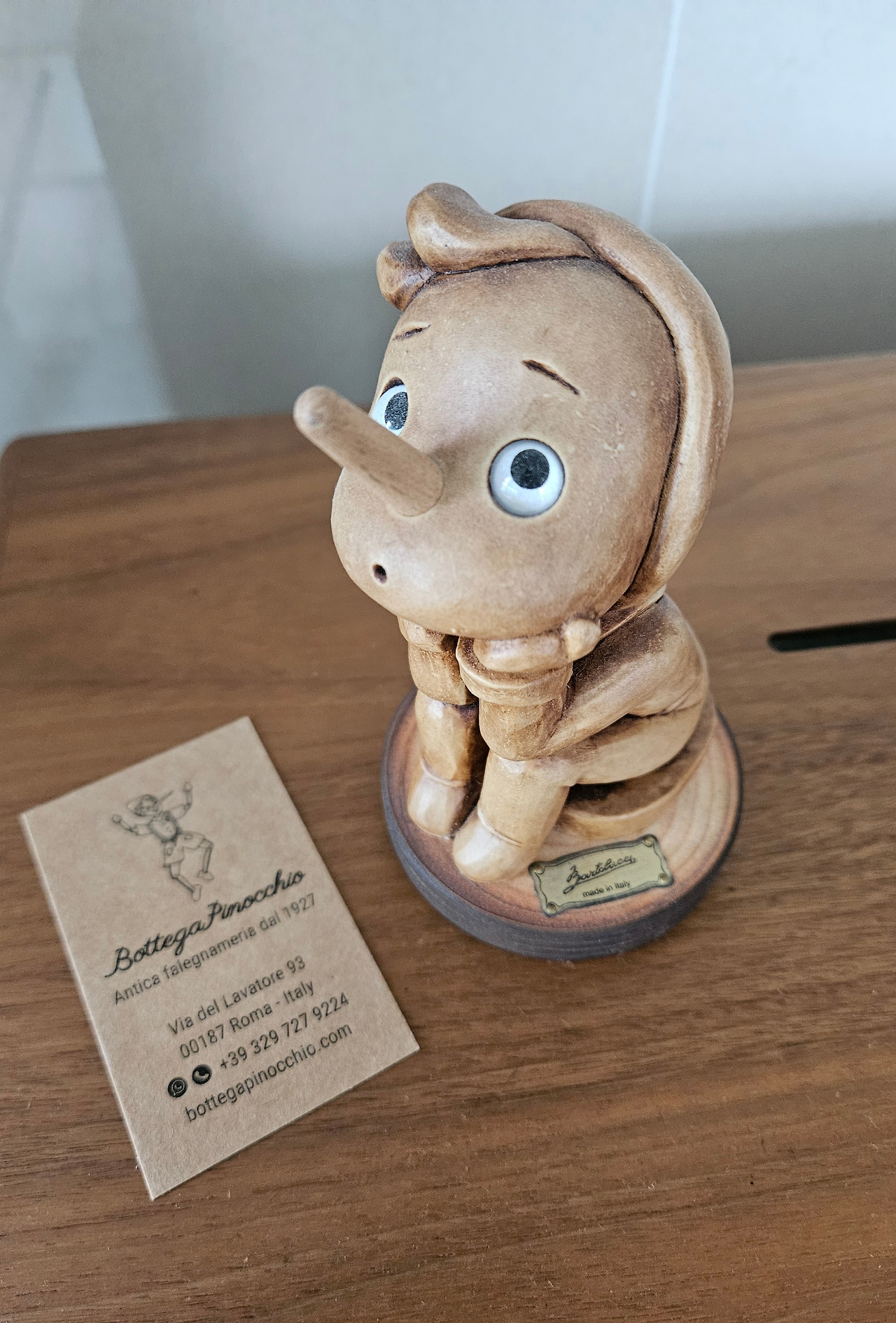 그렇게 다음 목적지를 고민하다가, 우리가 처음에 로마에서 너무 예쁘다고 하면서 봤던 피노키오 매장이 생각 나 그곳을 다시 찾아 떠났다. 상점 이름도 모르고 지나가다 본 곳이었던지라, 엄마의 기억에 의존해서 가는데 길눈이 밝은 엄마 덕분에 진짜 한 번 본 길인데도 한 번에 찾아왔다. 나는 길치인데 그건 정말 전혀 닮지 않았다. 그곳에서 구경하는데 여전히 너무 예쁜 게 많아서 고민하다가 아빠가 좋아할 것 같은 피노키오로 하나 구매하였다. 원래 동화 속에서 피노키오가 바다에 빠진 곳이 피사 근처에 있는 바다라고 들었는데 예쁜 건 로마에 있다는 게 재밌었다. 50유로 여서 너무 비싸서 고민을 했지만 사고 나서도 사실 크게 후회되는 퀄리티가 아니었다.