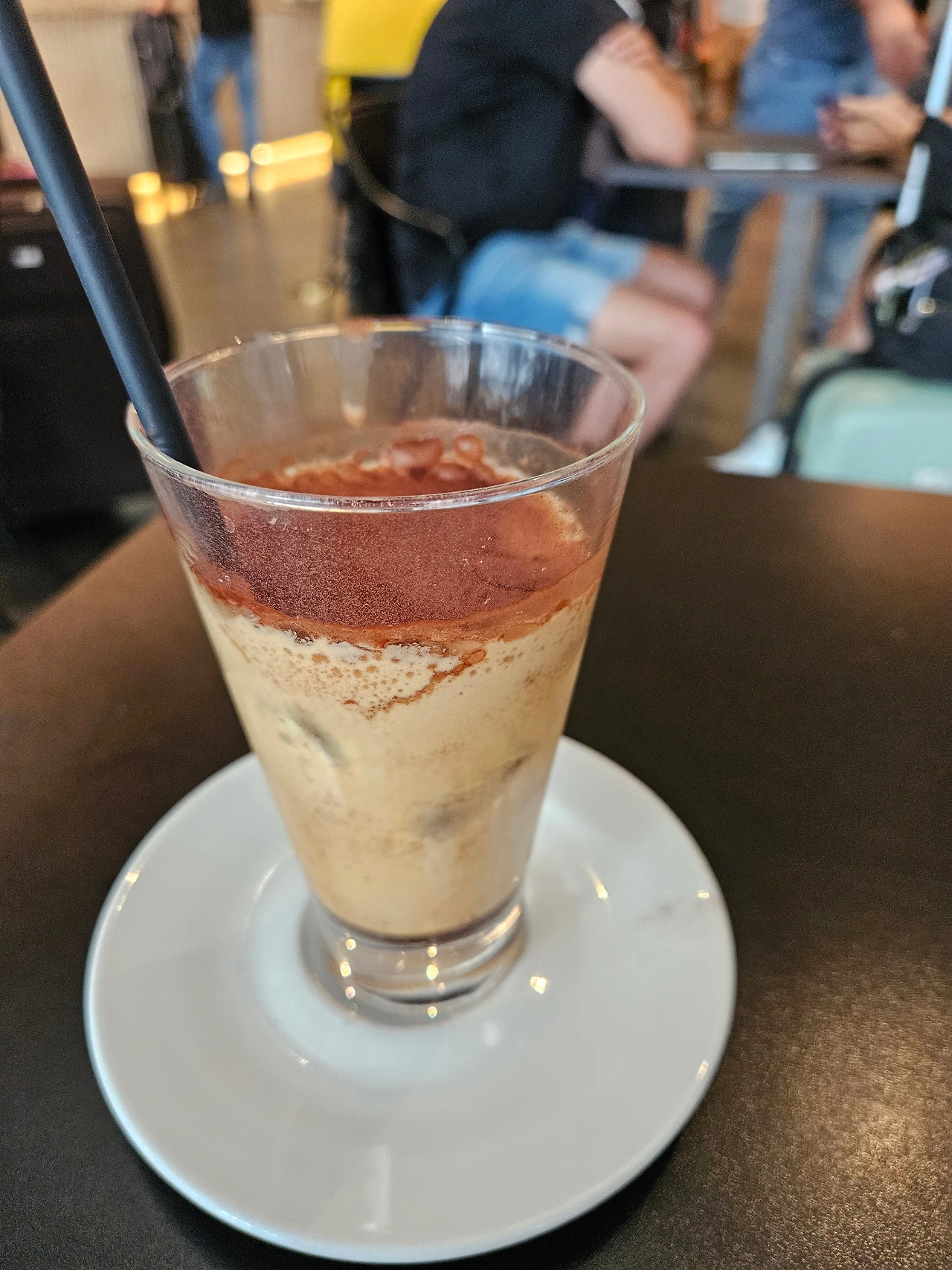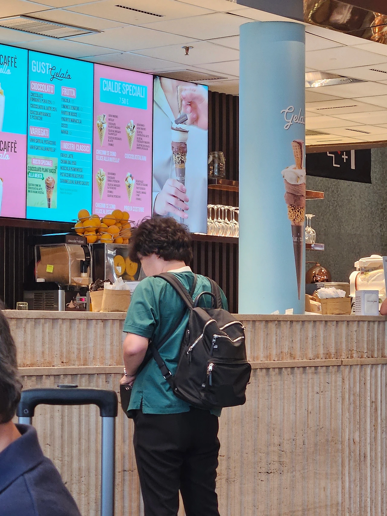 저녁 비행기지만 돌아가는 비행기는 아빠의 가족 마일리지 찬스를 써서 비지니스를 예매해 둔 상태였다. 엄마와 나 모두 태어나서 첫 비지니스 탑승이라 설레는 마음으로 미리 가서 라운지에 앉아있기로 했다. 하루종일 그렇게 돌아다니고도 역에서 공항까지 가는 기차 시간이 1시간 즈음 남아있었다. 기차역 내부에 있는 카페에 갔는데, 그동안 이탈리아 어디를 다녀도 정말 보이지 않던 ICED AMERICANO (아이스 아메리카노)가 있길래 무릎을 치며 유레카를 외쳤다.