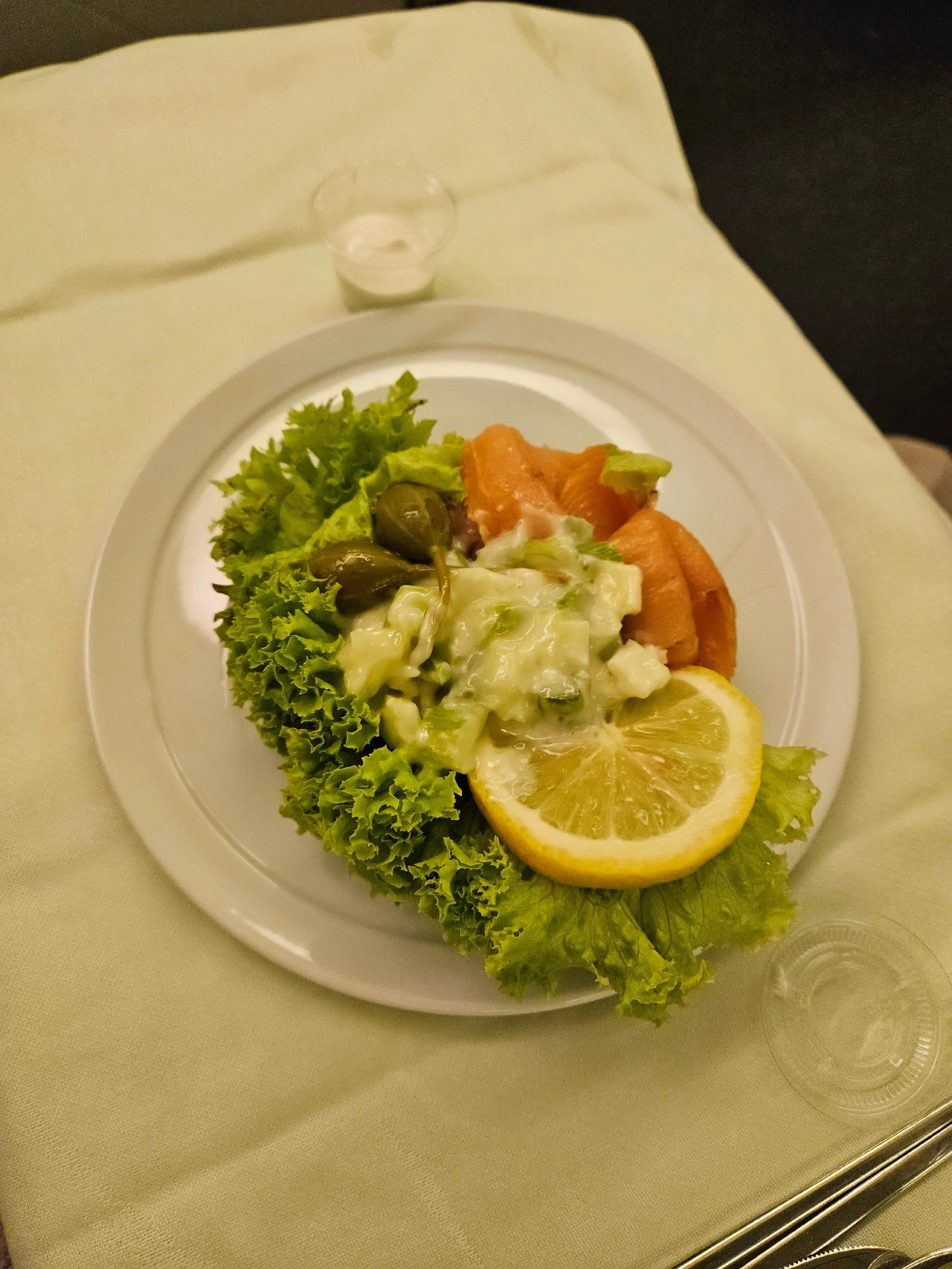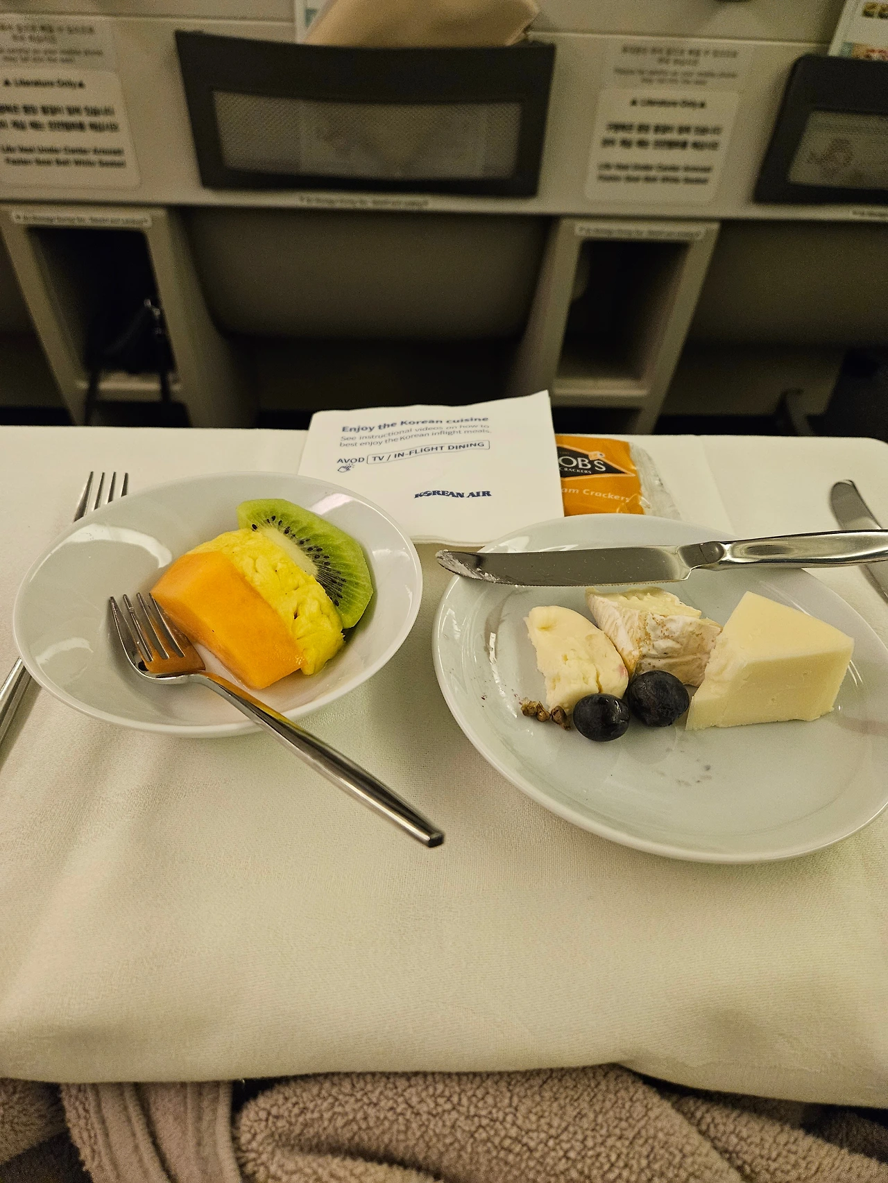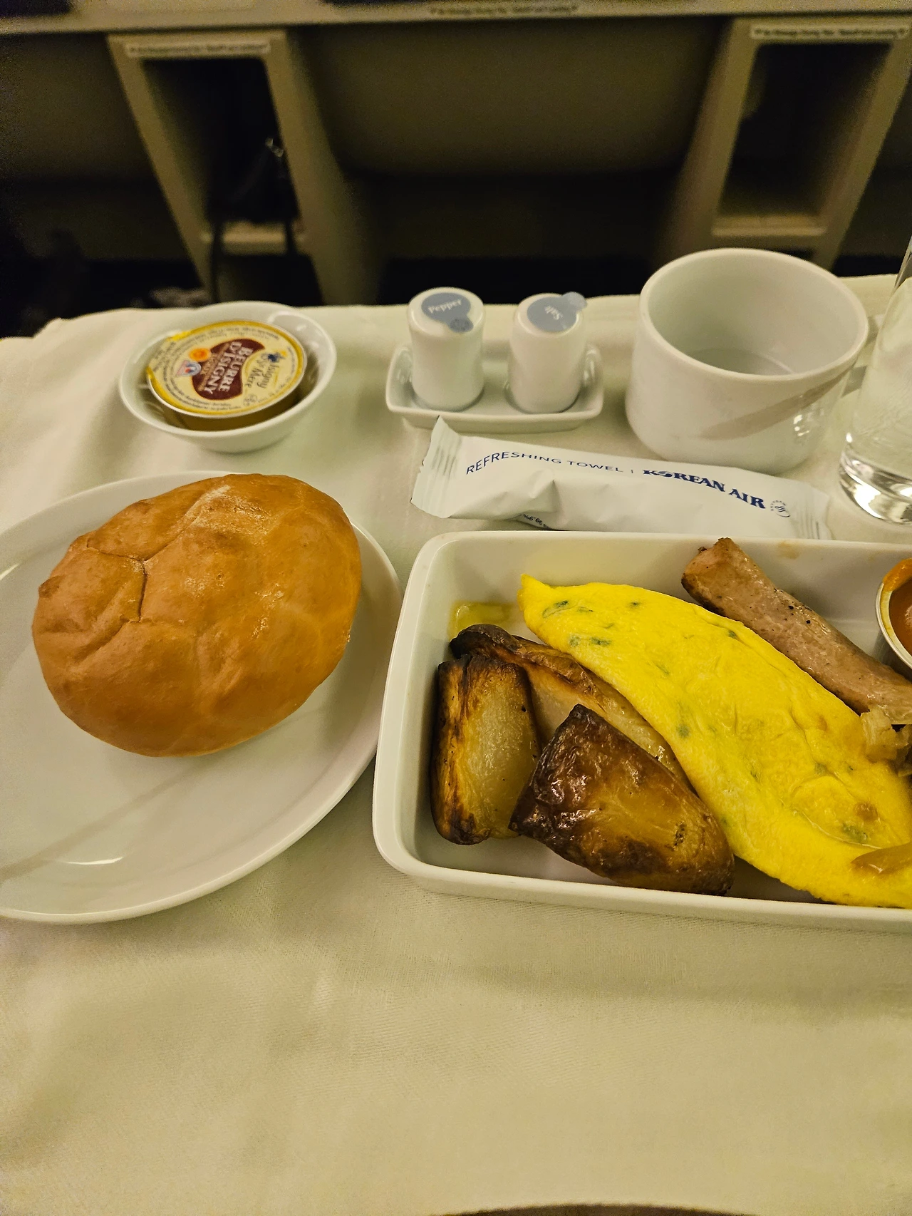저녁 비행기라 탑승하자마자 밥을 줄 것이기에 라운지에 가서는 마지막 어패럴 스프릿츠만 마시고 먹을 것은 많이 먹지 않았다. 첫 비지니스라 매우 설렜는데, 의자를 180도로 눕힐 수 있는 것이었다. 우와. 이래서 다들 돈을 열심히 버나 보다 싶었다. 설국열차가 인도에서만 보던 게 아니라, 우리 근처에도 항상 있었는데 당연하게 생각해서 비행기 좌석도 설국열차 같은 것의 일종이라는 생각을 못 해본 것 같았다. 거의 바로 저녁이 나왔는데, 테이블에 천도 깔아주고 갑자기 코스요리가 나오기 시작했다. 심지어 배가 너무 불러서 마지막에 나오던 후식인 하겐다즈 아이스크림은 먹지도 못했다.