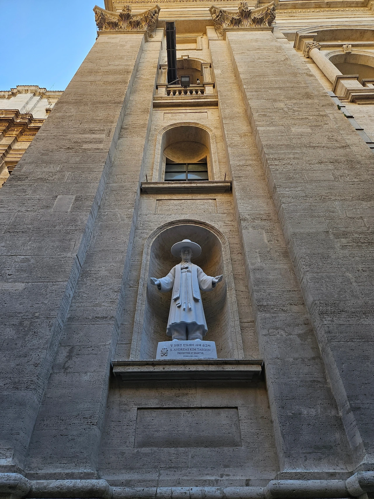 아무튼 그렇게 구경을 한 뒤 이번 여행 초반에 로마에서 바티칸 성당에 들어가 보지 못했으니 이번 기회에 다시 들어가 보자고 했다. 어차피 무료이고 시간이 많았기에 줄을 기다려서 들어갔고 지하에도 내려가 볼 수 있었다. 지하는 교황들의 무덤이 있는 곳이었다. 일부는 그곳에서 기도와 예배를 드리고 있었다. 내가 천주교가 아니라 그런지 그런 모습들이 뭔가 신기했다. 그렇게 구경 후 밖으로 나오는데, 출구 쪽에 우리나라 최초의 성직자인 김대건 신부님의 모습이 보였다. 그곳에서 김대건 신부님의 동상을 보니 괜스레 더 반갑고 기뻤다.