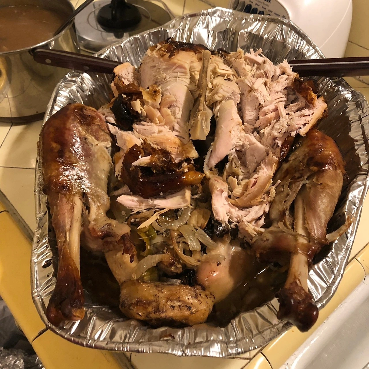 Tom이 칠면조 요리가 다 됐다며 사람들을 불러 모았다. 진짜 영화에서만 보던 그 칠면조 요리였다! 각자 가져온 음식들도 함께 놓아두고 먹었는데, 우리가 만든 감자전을 가리키며 누군가 ‘이거 너무 맛있는데 뭐야?’라고 물어봤다. 한국 음식을 자랑하고 싶었지만, 그 마음보다 사실 뉴욕 언니들과의 긴 영어 듣기 평가로 지쳐서 그냥 사람들이 알아서 추측하도록 놔두었다.